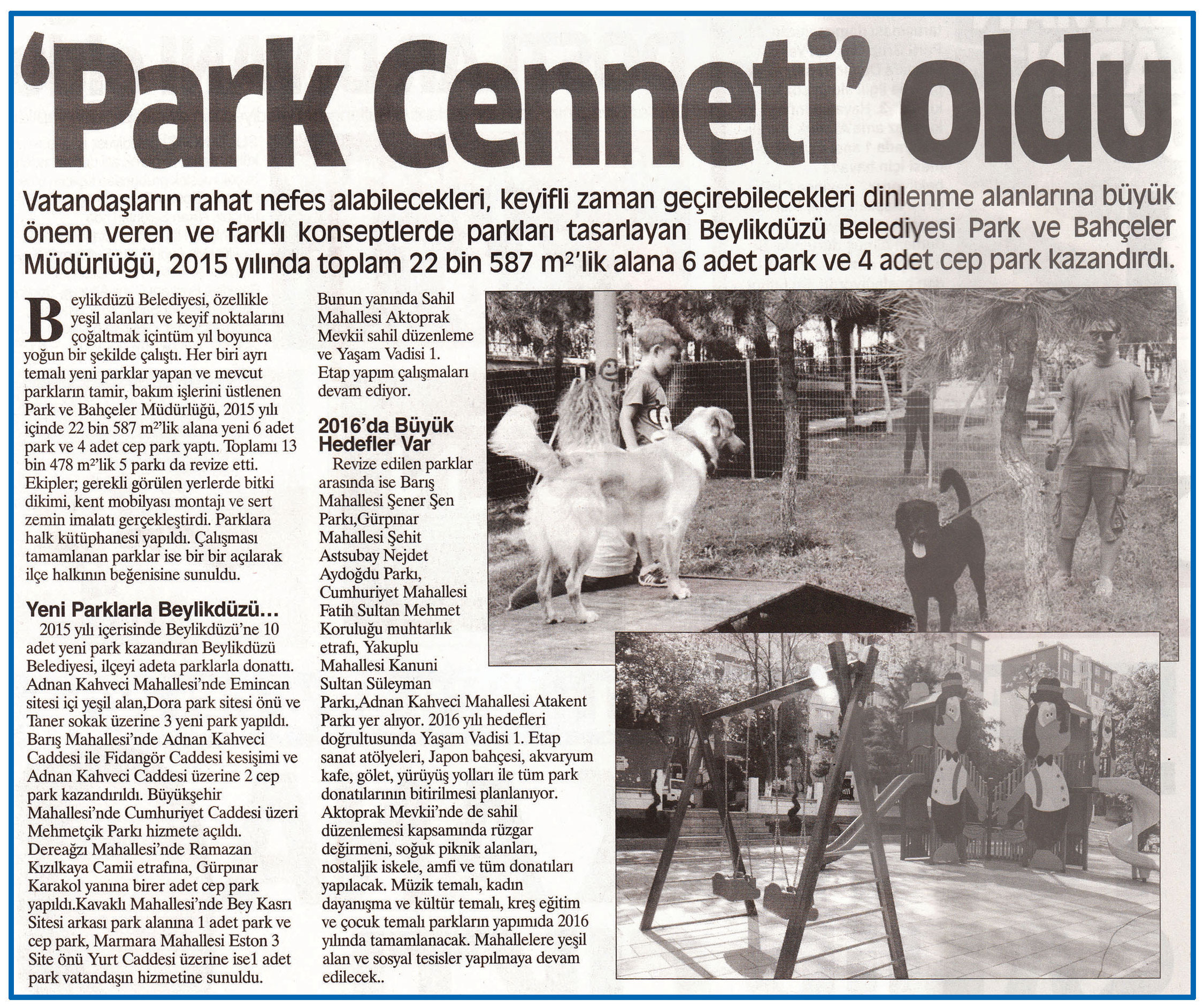 11 Ocack 2016 tarihli "HABER EKSPRESS" gazetesi. Beylikdüzü Belediyesi, özellikle yeşil alanları ve keyif noktalarını çoğaltmak için tüm yıl boyunca yoğun bir şekilde çalıştı.