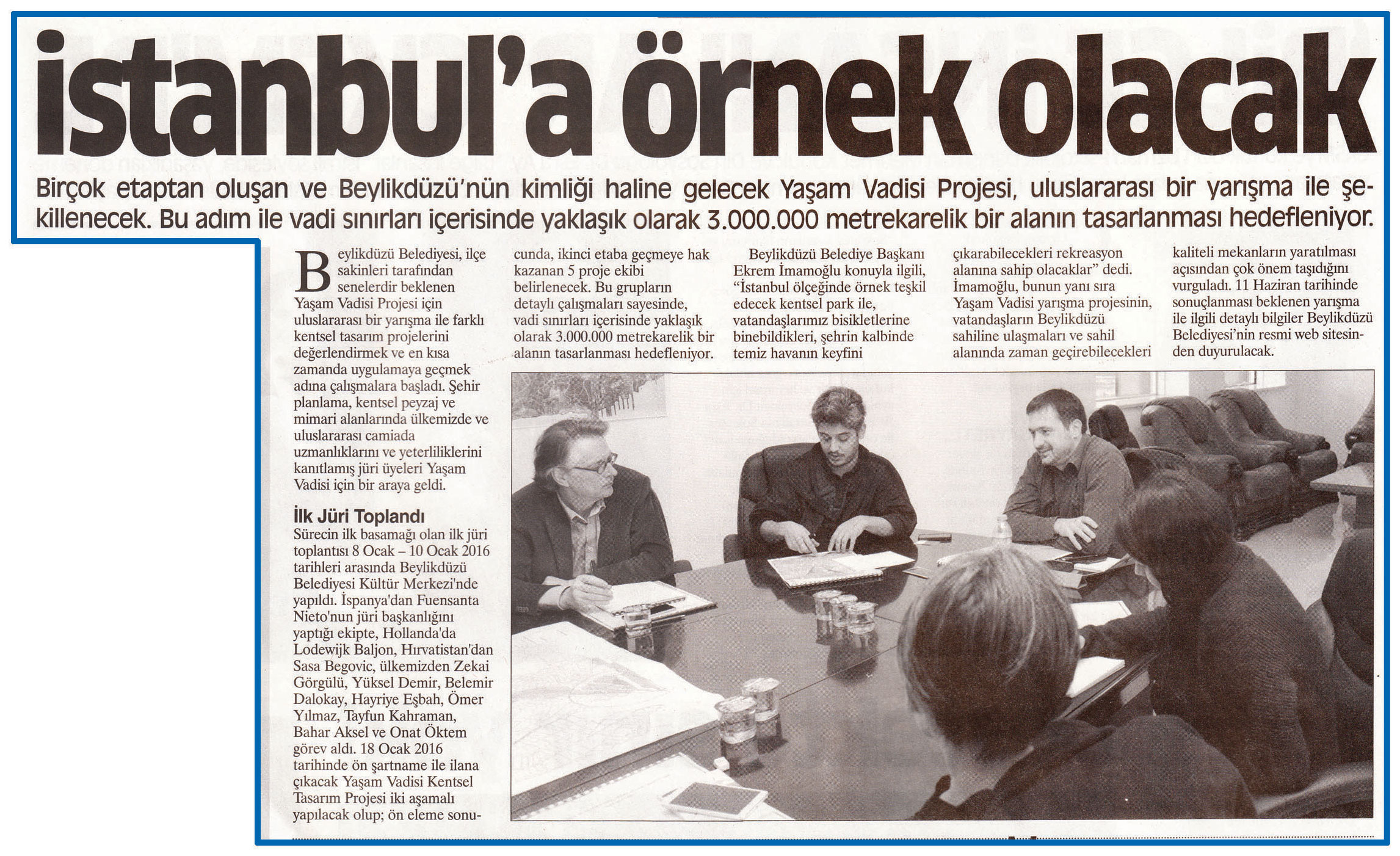 19 Ocak 2016 tarihli "HABER EKSPRESS" gazetesi. Birçok etaptan oluşan ve Beylikdüzü'nün kimliği haline gelecek Yaşam Vadisi Projesi, uluslararası bir yarışma ile şekillenecek. Bu adım ile vadi sınırları içerisinde yaklaşık olarak 3.000.000 metrekarelik bir alanın tasarlanması hedefleniyor.