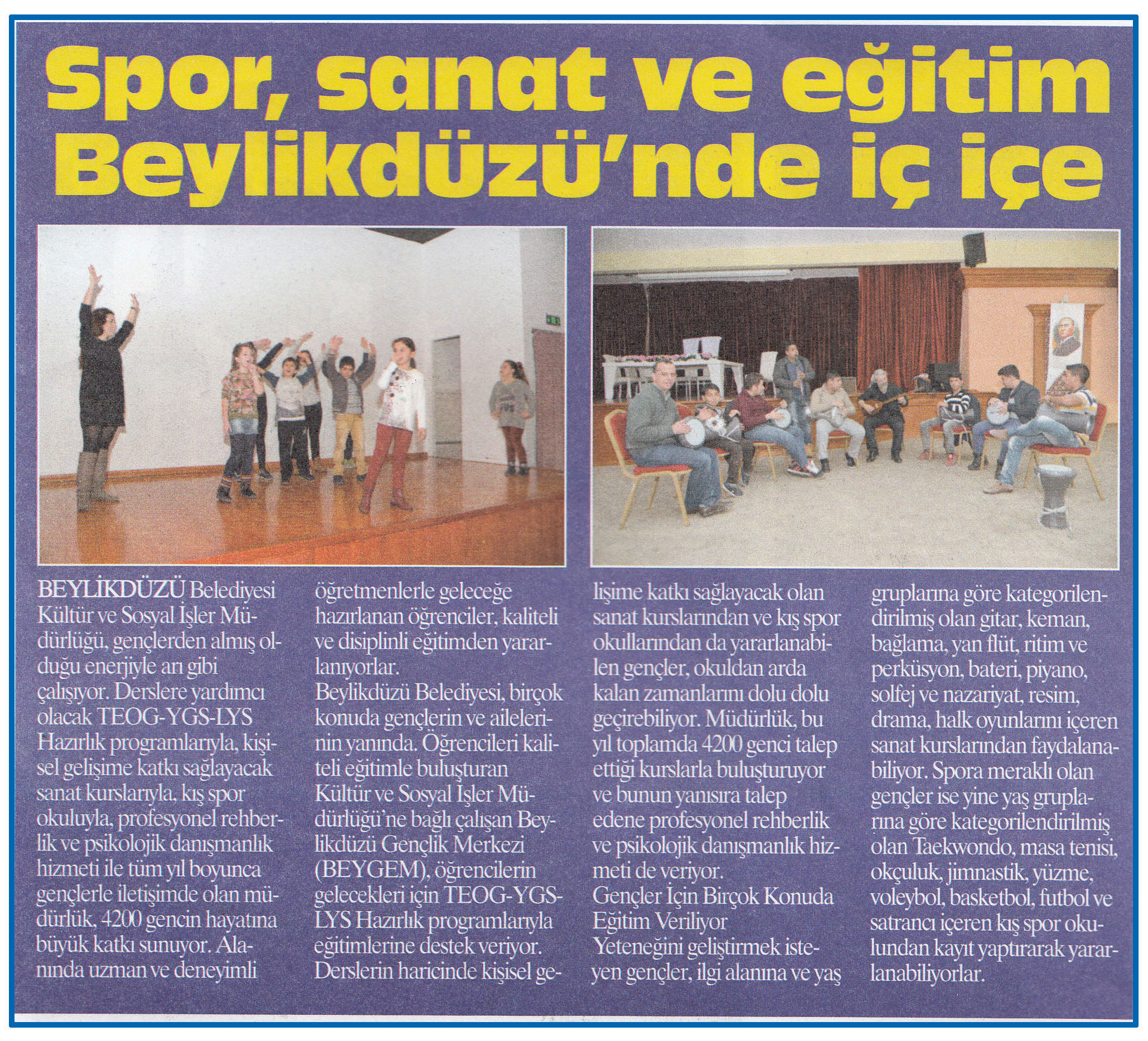 20 Ocak 2016 tarihli "ZEYNA" gazetesi. Beylikdüzü Belediyesi Kültür ve Sosyal İşler Müdürlüğü, gençlerden almış olduğu enerjiyle arı gibi çalışıyor.