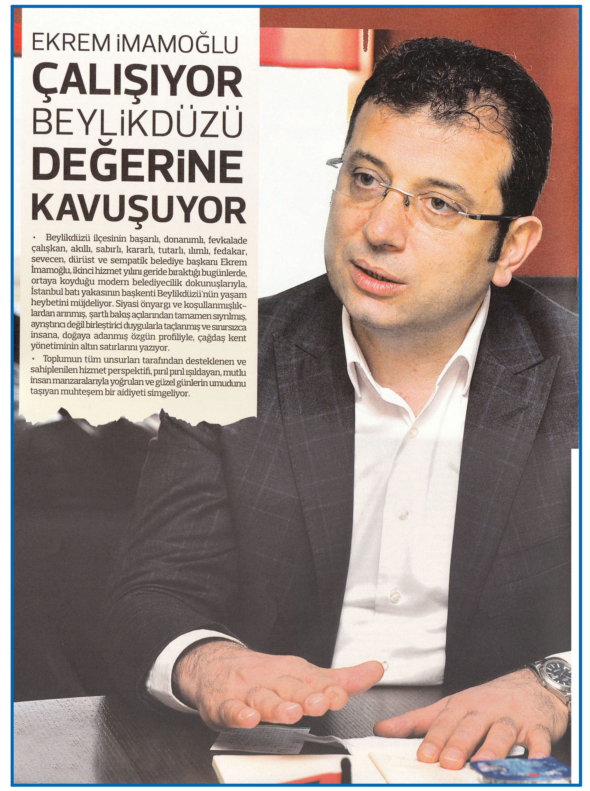 8 Şubat 2017 tarihli "PAROLA" gazatesi. Beylikdüzü ilçesinin başarılı belediye başkanı Ekrem İmamoğlu, ikinci hizmet yılını geride bıraktığı bugünlerde ortaya koyduğu modern belediyecelik dokunuşlarıyla İstanbul batı yakasının başkenti Beylikdüzü'nün yaşam heybetini müjdeliyor.