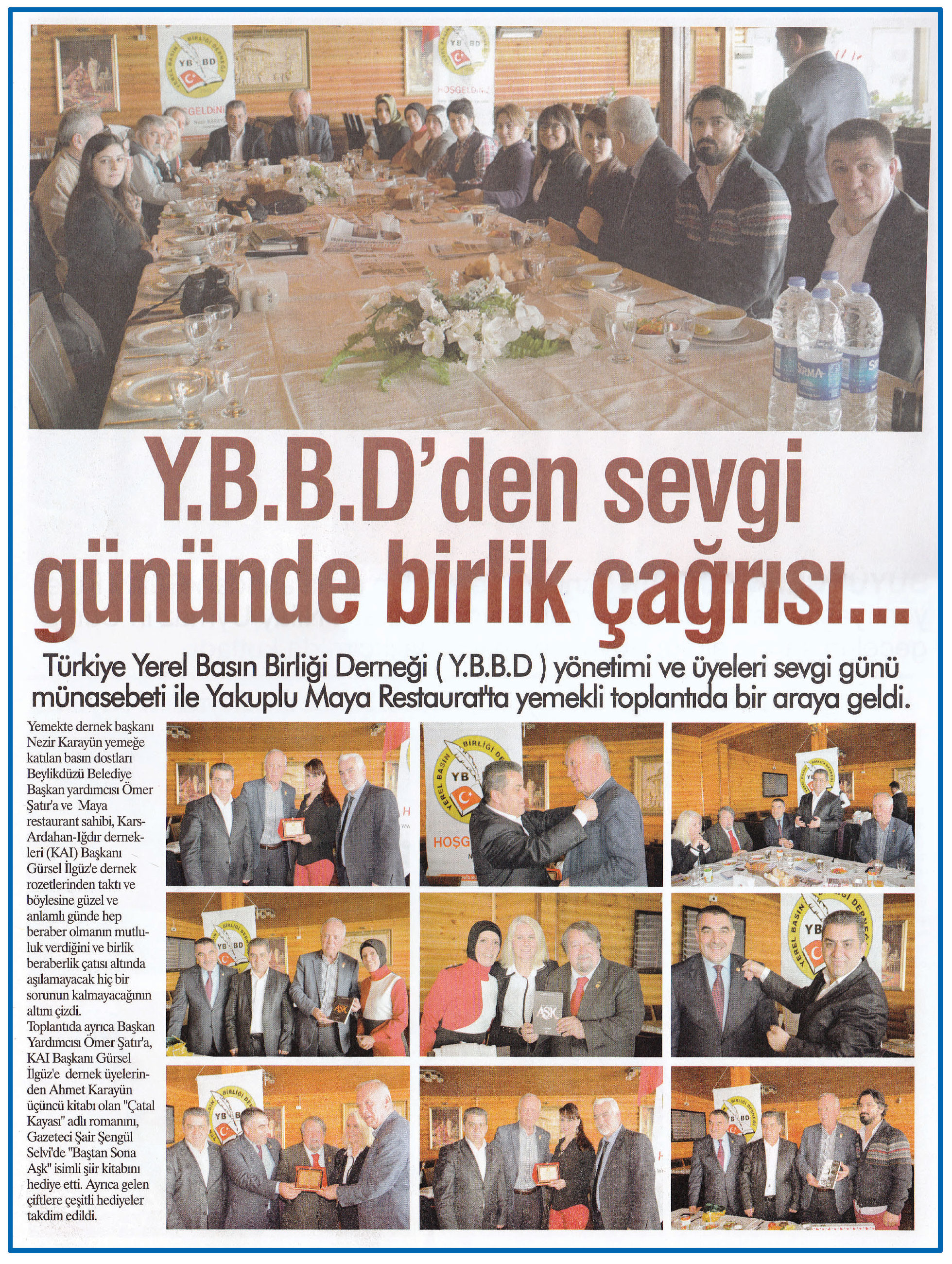17 Şubat 2016 tarihli "ZEYNA" gazetesi. Türkiye Yerel Basın Birliği Derneği (Y.B.B.D) yönetimi ve üyeleri sevgi günü münasebeti ile Yakuplu Maya Restaurat'ta yemekli toplantıda bir araya geldi.