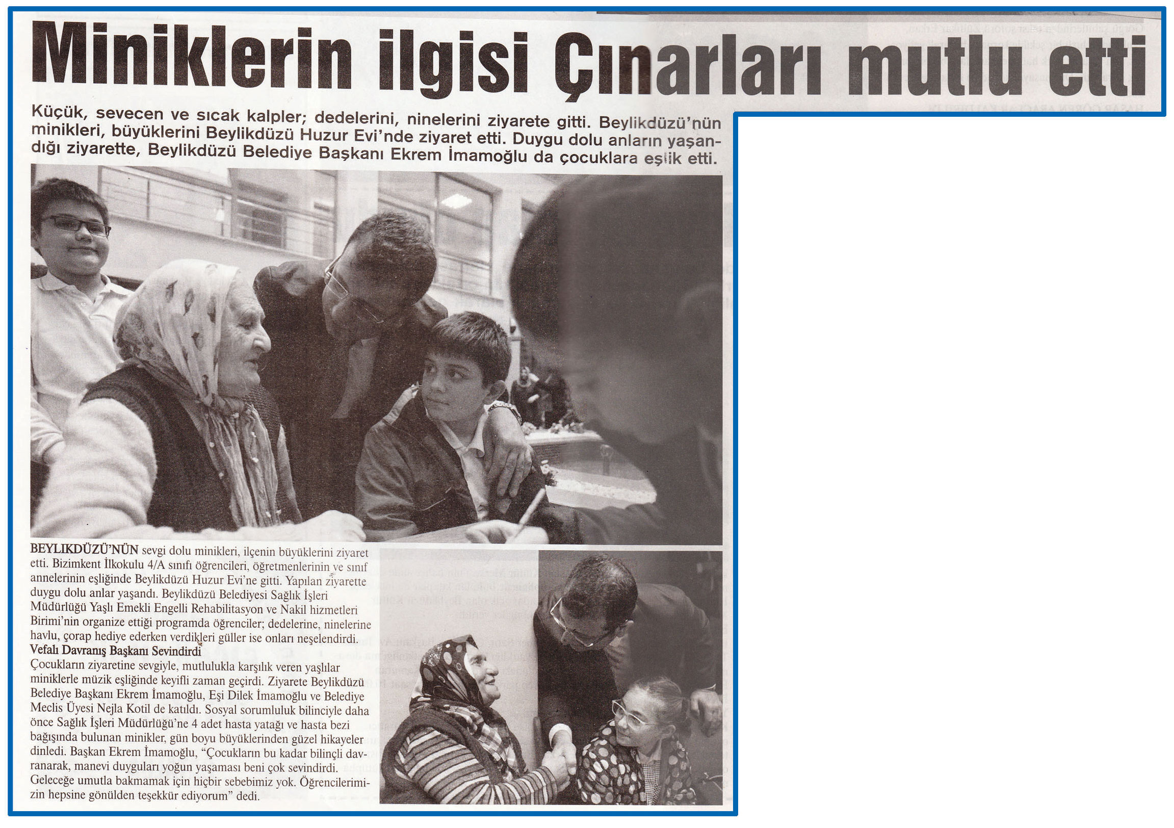 1 Nisan 2016 tarihli "MARMARA" gazetesi. Küçük, sevecen ve sıcak kalpler; dedelerini, ninelerini ziyarete gitti. Beylikdüzü'nün minikeri, büyüklerini Beylikdüzü Huzur Evi'nde ziyaret etti.