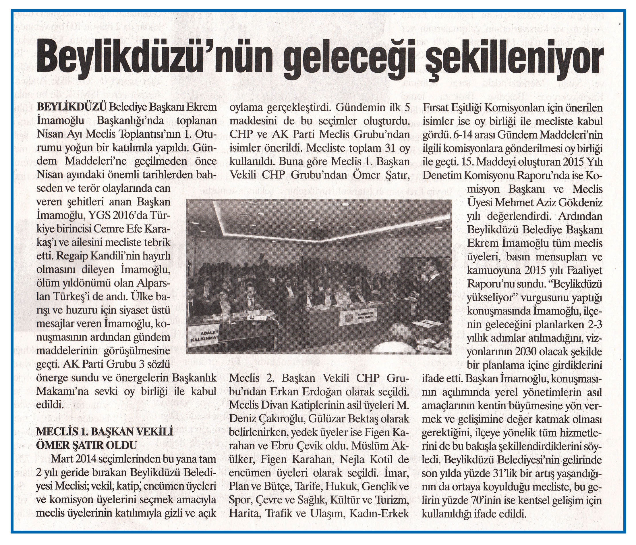 5 Nisan 2016 tarihli "DEĞİŞİM" gazetesi. Beylikdüzü Belediye Başkanı Ekrem İmamoğlu Başkanlığı'nda toplanan Nisan Ayı Meclis Toplantısı'nın 1. Oturumu yoğun bir katılımla yapıldı.