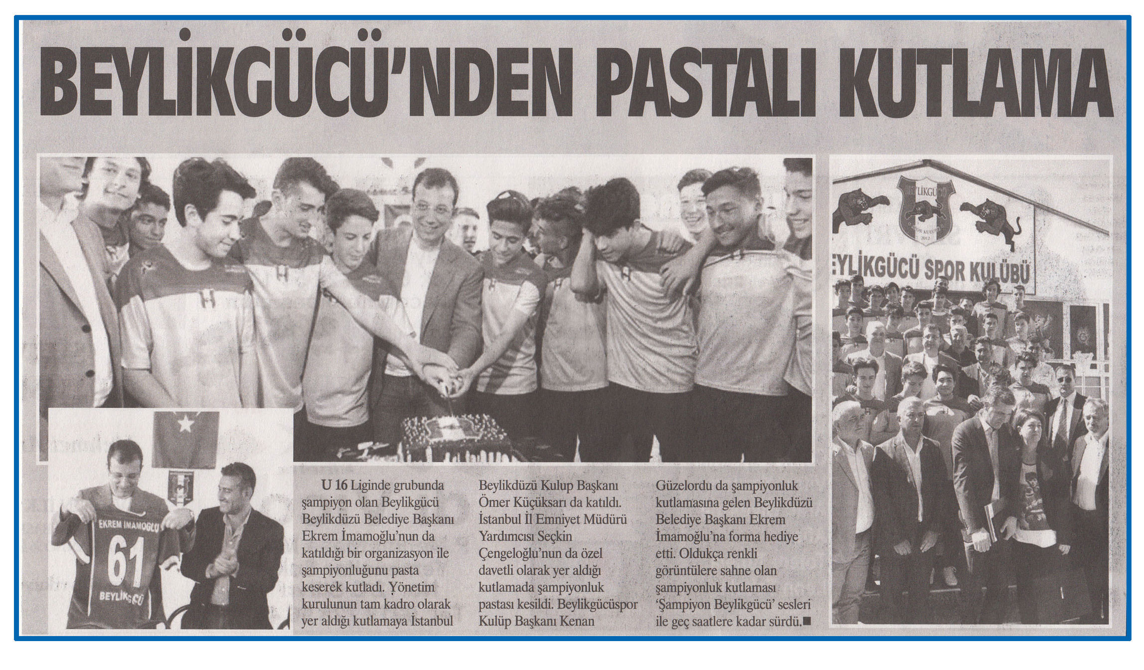 20 Nisan2016 tarihli "HABER EKSPRESS" gazetesi. U 16 Liginde grubunda şampiyon olan Beylikgücü Beylikdüzü Belediye Başkanı Ekrem İmamoğlu'nun da katıldığı bir organizasyon ile şampiyonluğunu pasta keserek kutladı.