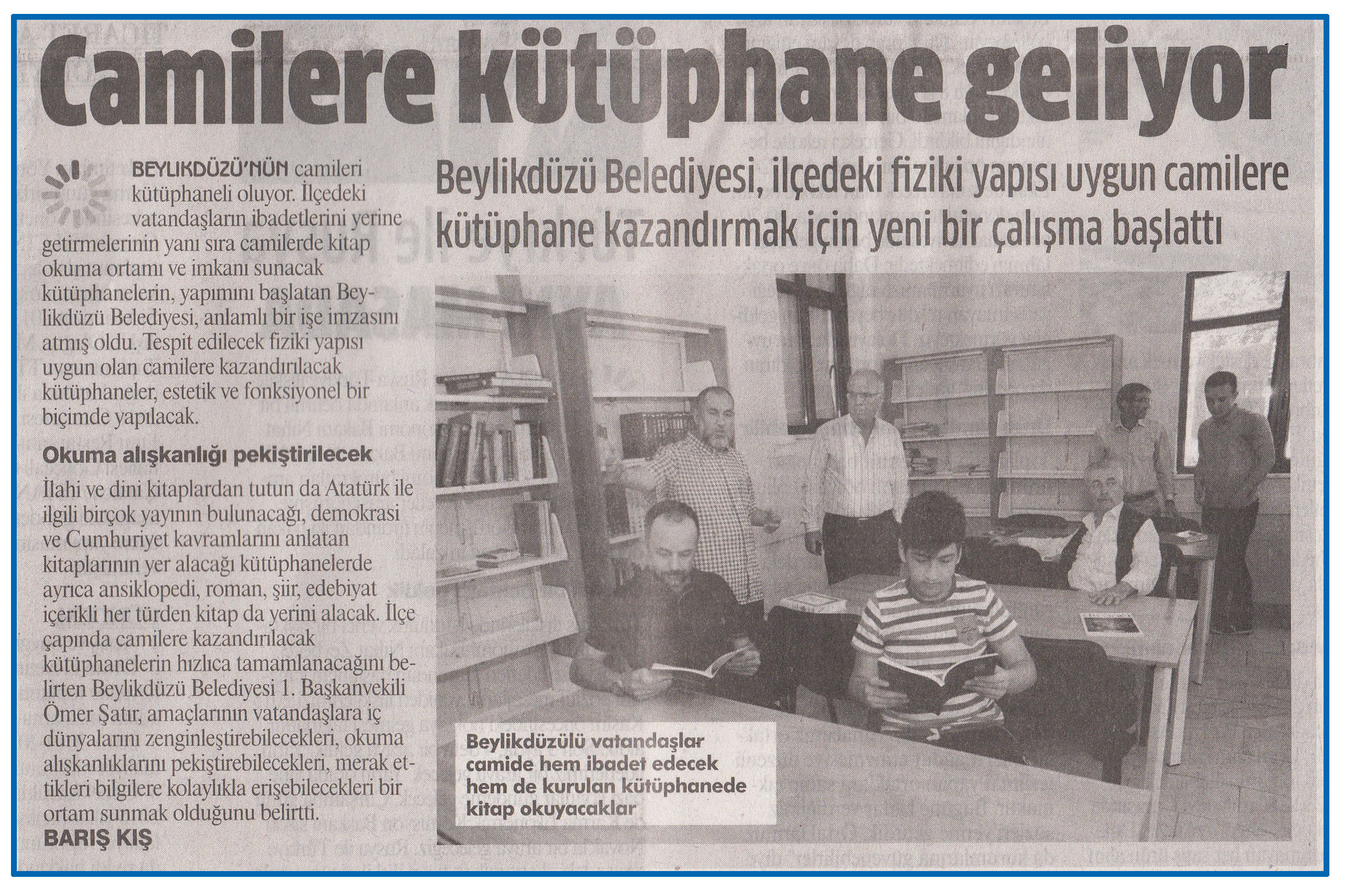 11 Ekim 2016 tarihli "NABIZ" gazetesi. Beylikdüzü'nün camileri kütüphaneli oluyor. İlçedeki vatandaşların ibadetlerini yerine getirmenin yanı sıra camilerde kitap okuma ortamı ve imkanı sunacak kütüphanelerin yapımını başlatan Beylikdüzü Belediyesi, anlamlı bir işe imzasını atmış oldu.
