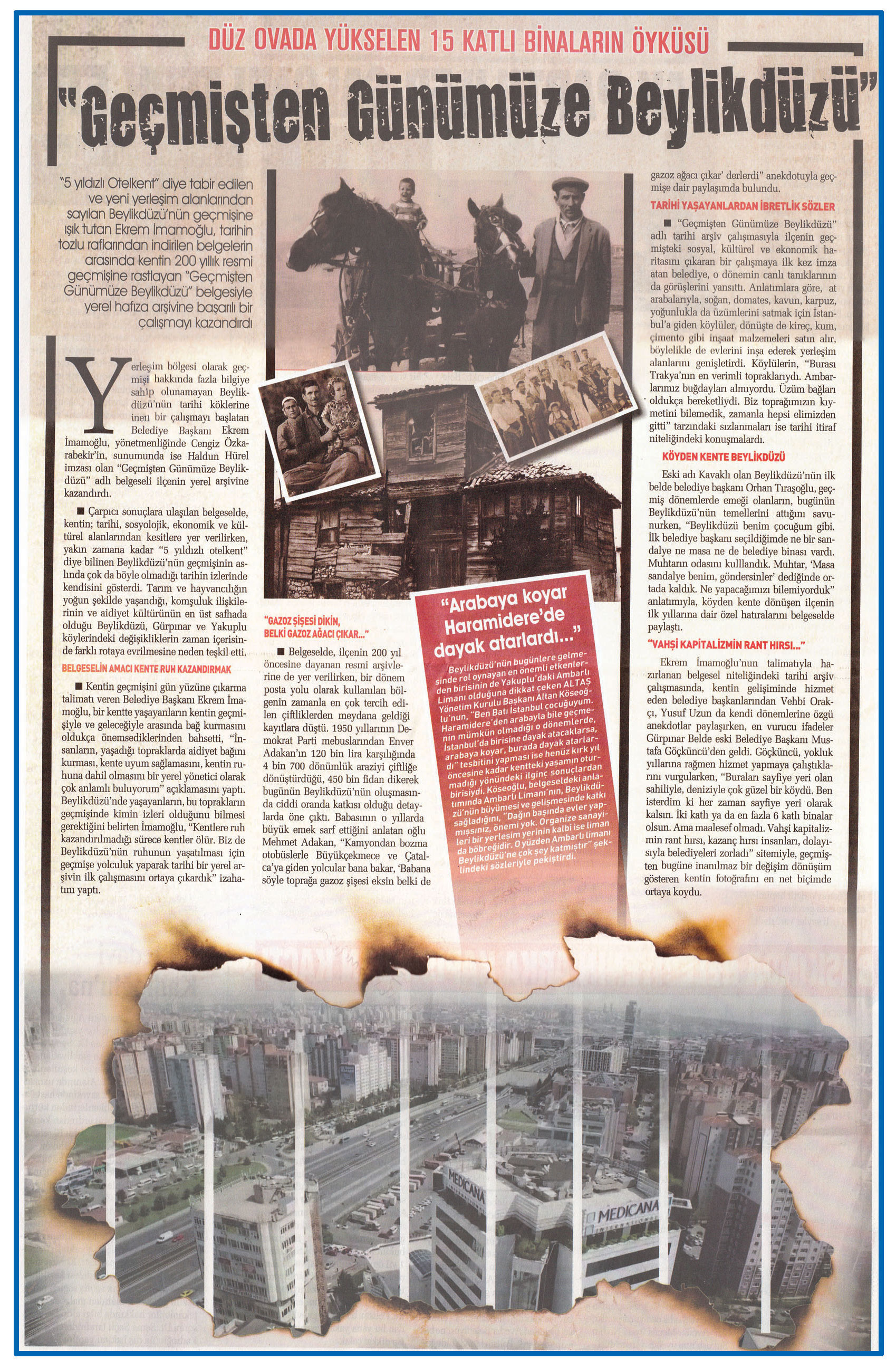 6 Mayıs 2016 tarihli "YERELKULİS" gazetesi. "5 yıldızlı Otelkent" diye tabir edilen ve yeni yerleşim alanlarından sayılan Beylikdüzü'nün geçmişine ışık tutan Ekrem İmamoğlu, tarihin tozlu raflarından indirilen belgelerin arasında kentin 200 yıllık resmi geçmişine rastlayan "Geçmişten Günümüze Beylikdüzü" belgeseliyle yerel hafıza arşivine başarılı bir çalışmayı kazandırdı.