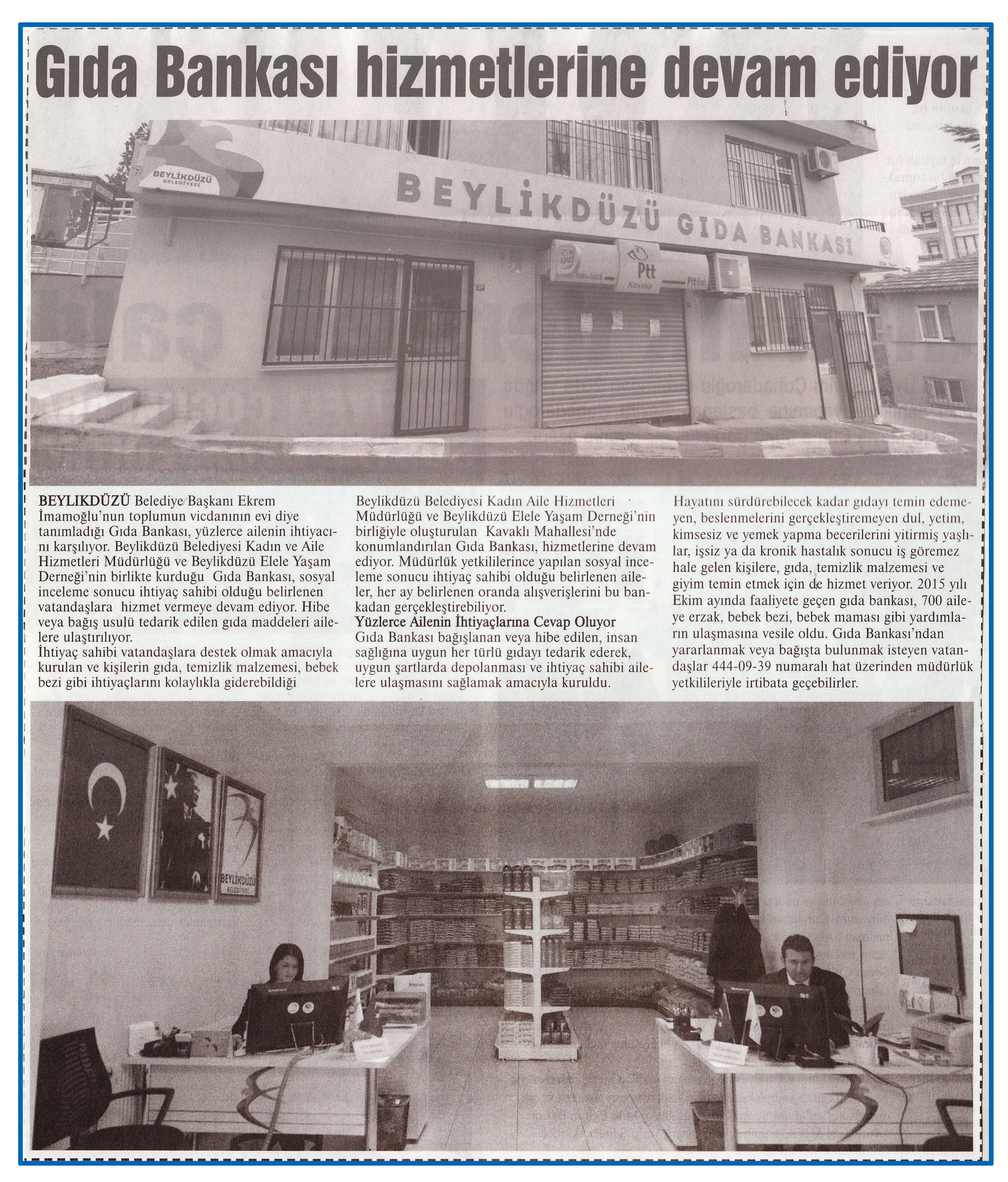 16 Mayıs 2016 tarihli "MARMARA" gazetesi. Beylikdüzü Belediye Başkanı Ekrem İmamoğlu'nun toplumun vicdanının evi diye tanımladığı Gıda Bankası, yüzlerce ailenin ihtiyacını karşılıyor.
