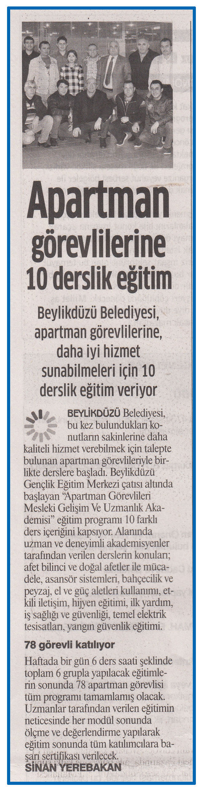 25 kasım 2016 tarihli ''GAZETEM iSTANBUL'' Beylikdüzü Belediyesi, apartman görevlilerine daha iyi hizmet verebilmeleri için 10 derslik eğitim veriyor.