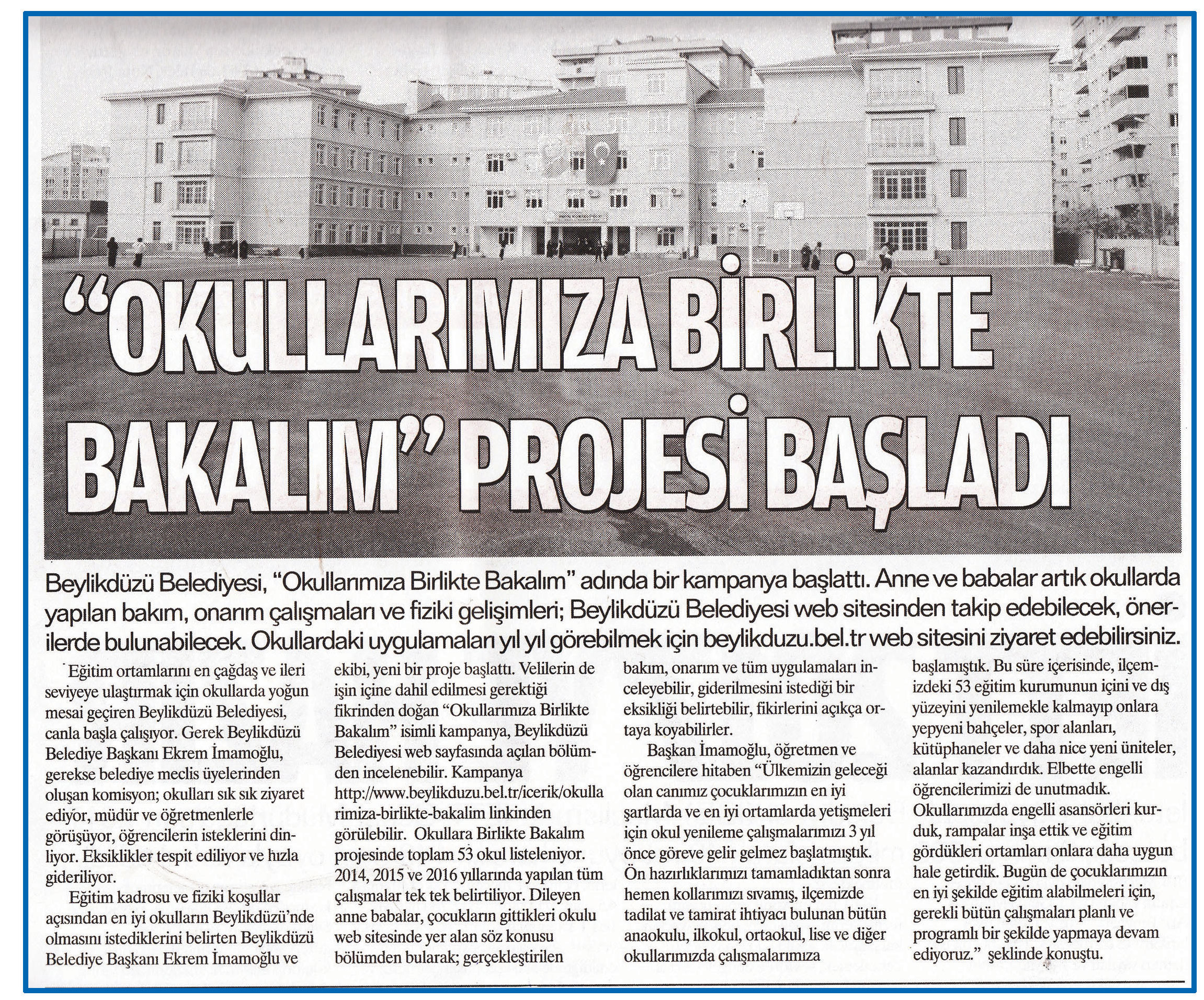 25 kasım 2016 tarihli ''HABERCİ'' gazetesi. Beylikdüzü Belediyesi ''Okullarımıza Birlikte Bakalım'' adında bir kampanya başlattıı.