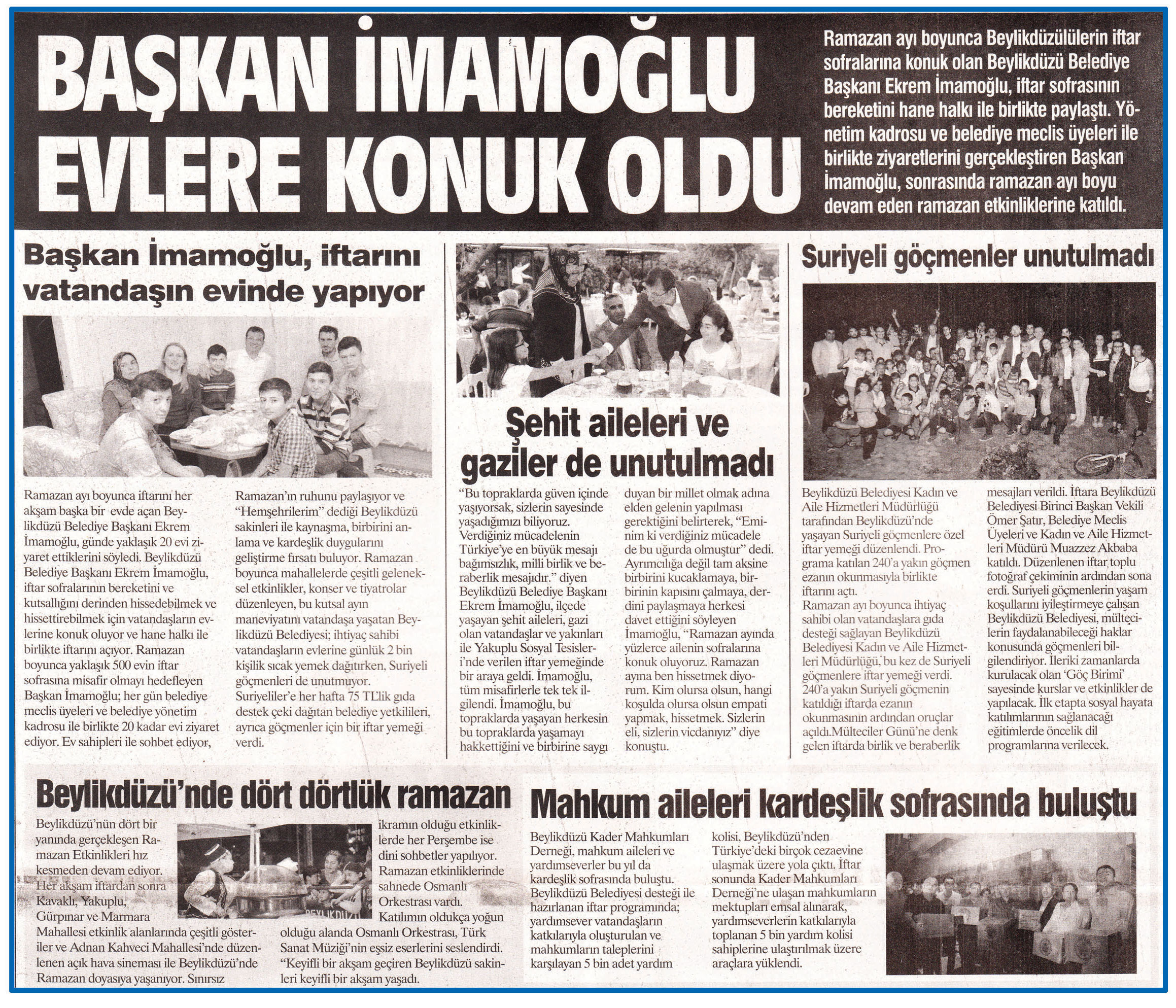 1 Temmuz 2016 tarihli "KENT GÜNDEM" gazetesi. Ramazan ayı boyunca Beylikdüzülülerin iftar sofralarına konuk olan Beylikdüzü Belediye Başkanı Ekrem İmamoğlu,iftar sofrasının bereketini hane halkı ile birlikte paylaştı.