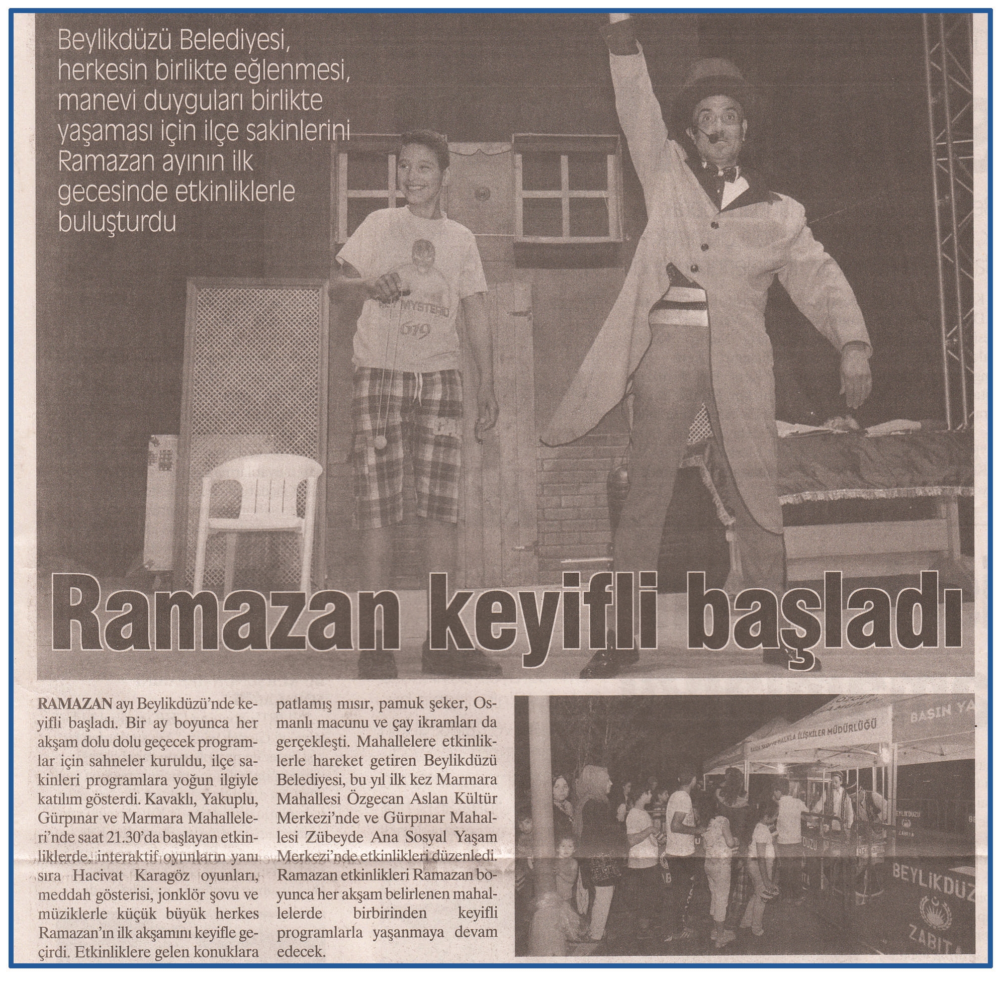 9 Haziran 2016 tarihli " DEĞİŞİM" gazetesi. Ramazan ayı Beylikdüzü'nde keyifli başladı. Bir ay boyunca her akşam dolu dolu geçecek programlar için sahneler kuruldu, ilçe sakinleri programlara yoğun ilgiyle katılım gösterdi.