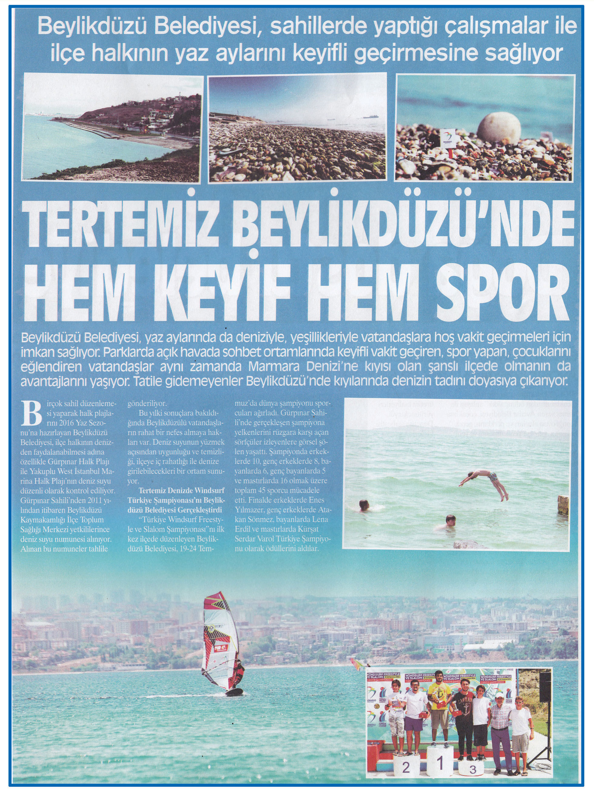 2 Ağustos 2016 tarihli ''GAZETE 3. BÖLGE'' gazetesi. Beylikdüzü Belediyesi yaz aylarında deniziyle,yeşillikleriyle vatandaşlara hoş vakit geçirmeleri için imkan sağlıyor.