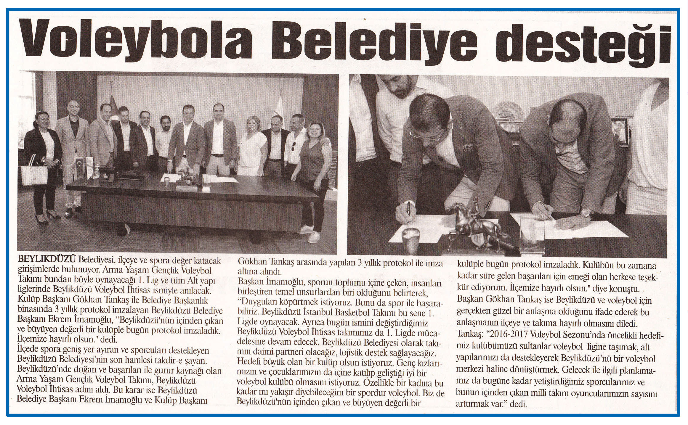 4 Ağustos 2016 tarihli ''MARMARA'' gazetesi. Beylikdüzü Belediyesi,İlçeye ve spora değer katacak girişimlerde bulunuyor.Arma Yaşam Gençlik Voleybol Takımı bundan böyle oynayacağı 1.Lig ve tüm altyapı liglerinde Beylikdüzü Voleybol İhtisas ismiyle anılacak.