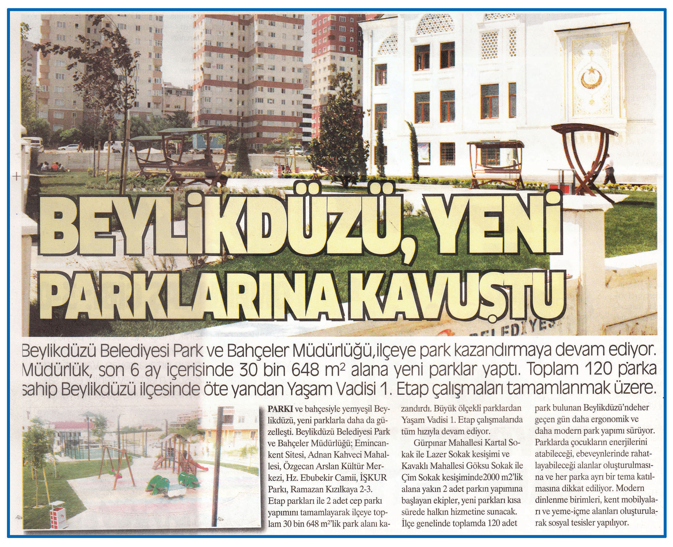 11 Ağustos 2016 tarihli ''HABER EKSPRESS'' gazetesi. Beylikdüzü Belediyesi Park ve Bahçeler Müdürlüğü, ilçeye park kazandırmaya devam ediyor.