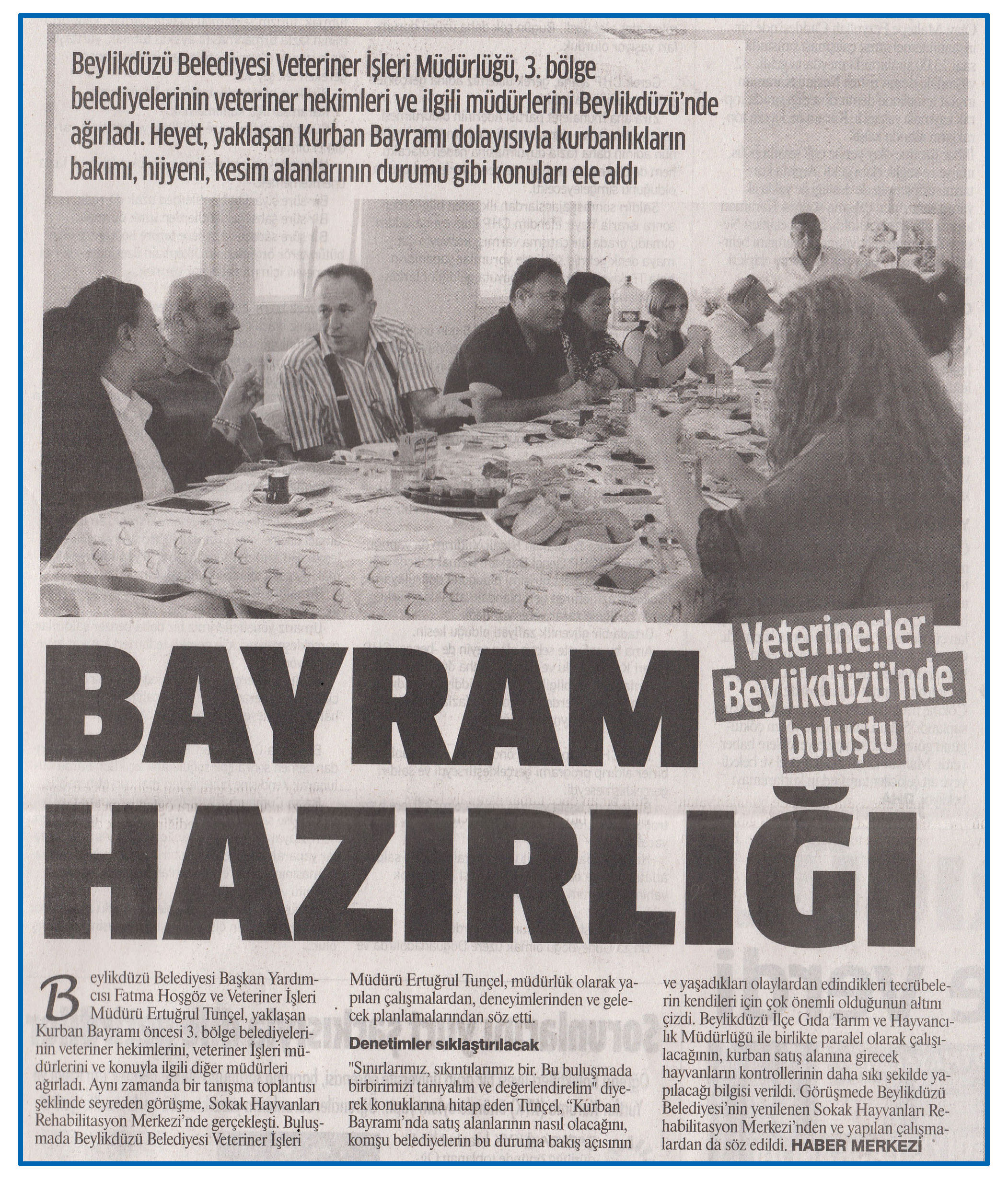 26 Ağustos 2016 tarihli ''GAZETEM İSTANBUL'' gazetesi. Beylikdüzü Belediyesi Veteriner İşleri Müdürlüğü,3. Bölge belediyelerinin veteriner hekimleri ve ilgili müdürlerini Beylikdüzü'nde ağırladı.Heyet,yaklaşan Kurban Bayramı dolayısıyla kurbanlıkların bakımı,hijyeni,kesim alanlarının durumu gibi konuları ele aldı.