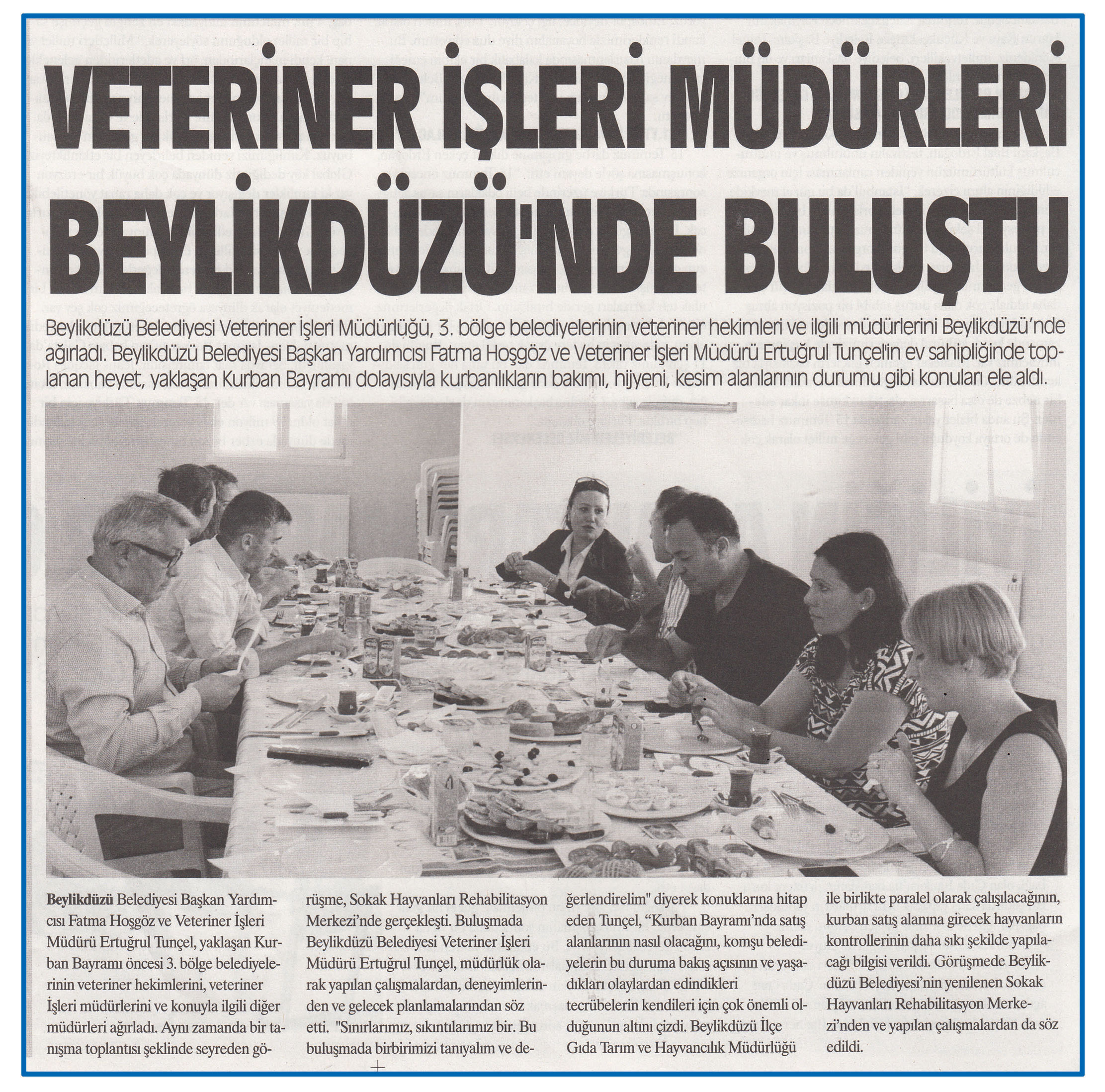 29 Ağustos 2016 tarihli '' YENİ GÜN'' gazetesi.Beylikdüzü Belediyesi Veteriner İşleri Müdürlüğü,3. Bölge belediyelerinin veteriner hekimleri ve ilgili müdürlerini Beylikdüzü'nde ağırladı.