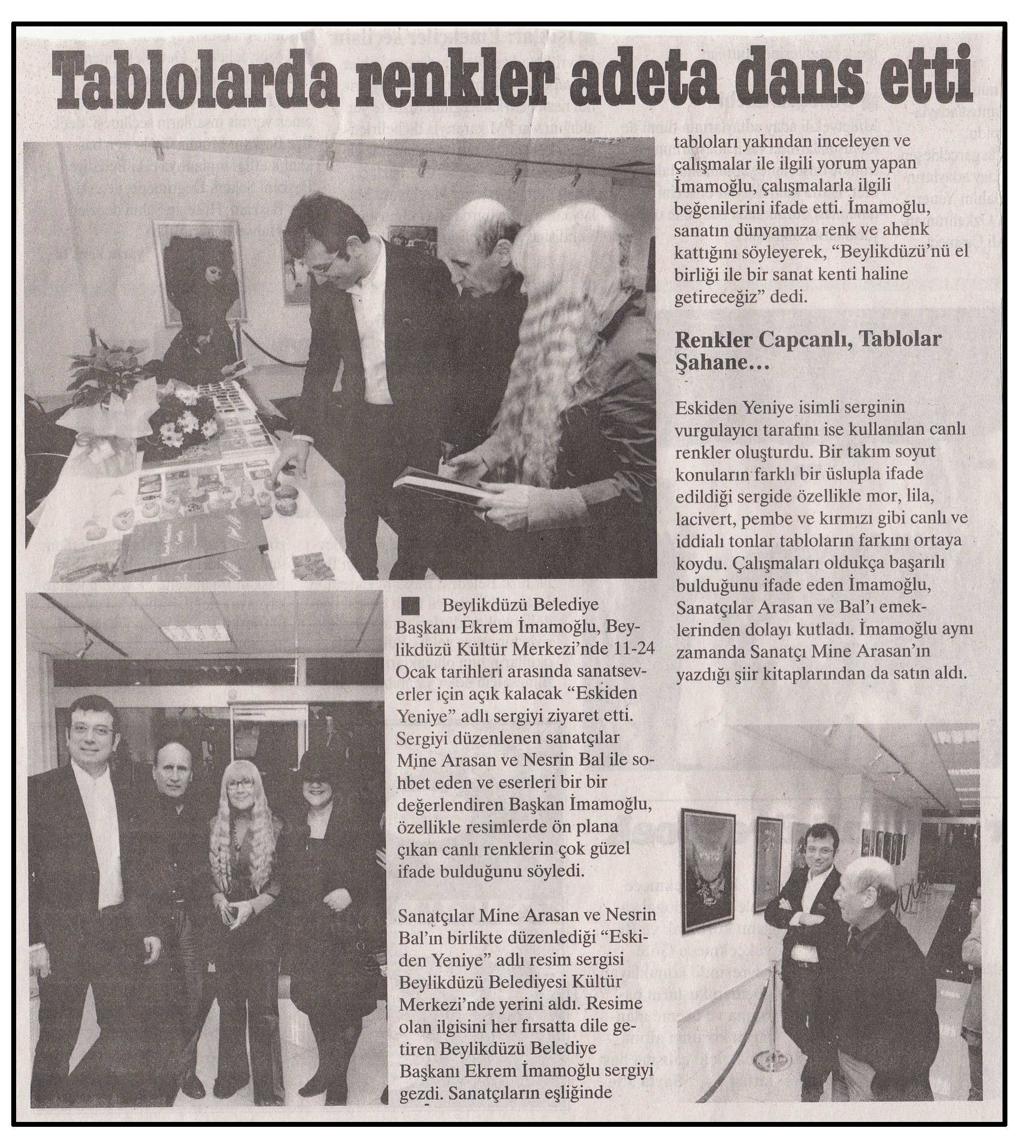 14 Ocak 2015 tarihiyle ''FARK GAZETESİ'' gazetesi. Tabloları yakından inceleyen ve çalışmalar ile ilgili yorum yapan İmamoğlu,çalışmalarla ilgili beğenilerini ifade etti.