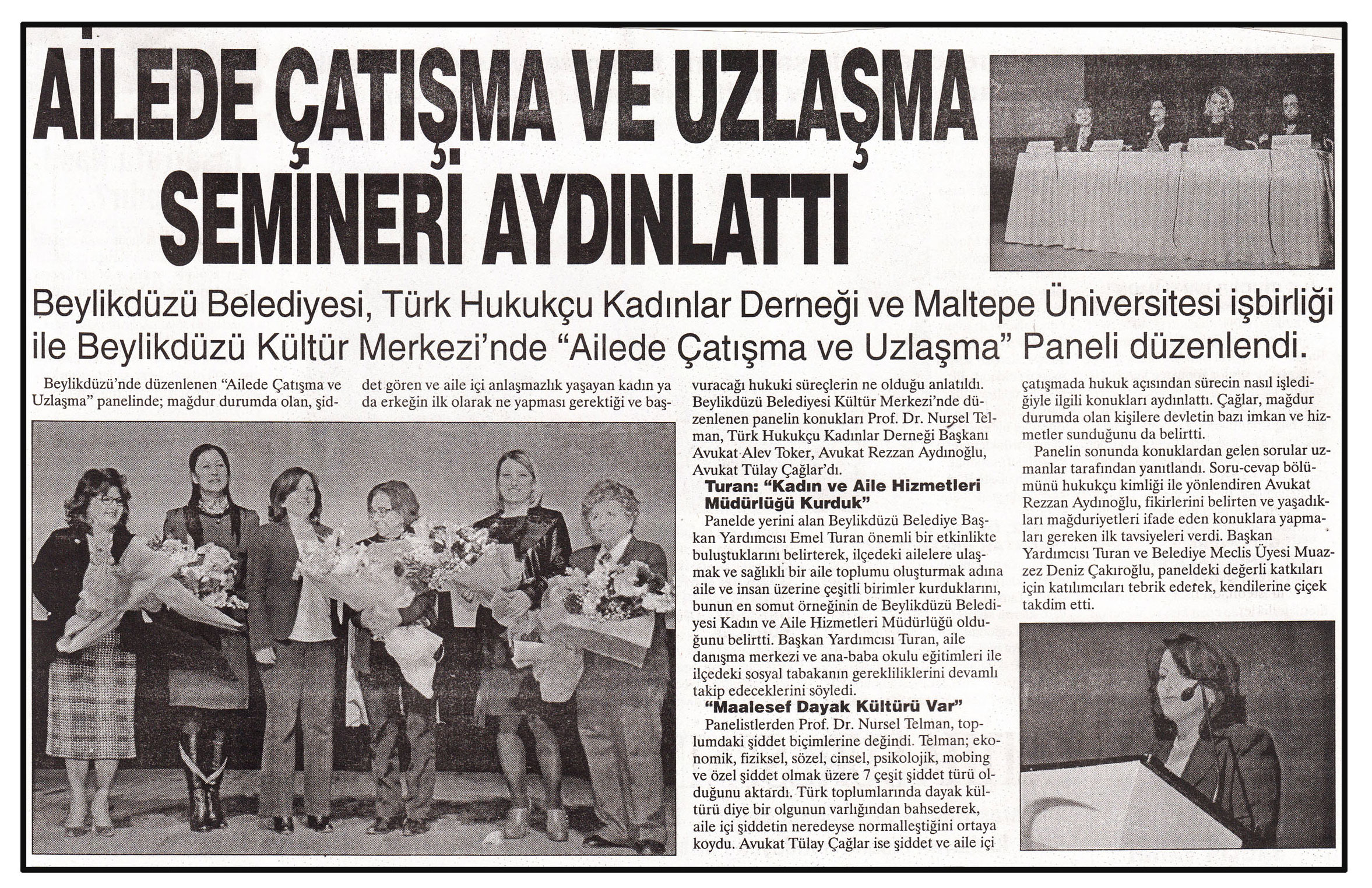 4 Şubat 2015 tarihli ''BÜYÜKÇEKMECE'' gazetesi. Beylikdüzü Belediyesi,Türk Hukukçu Kadınlar Derneği ve Maltepe Üniversitesi işbirliği ile Beylikdüzü Kültür Merkezi'nde ''Ailede Çatışma ve Uzlaşma'' paneli düzenledi.