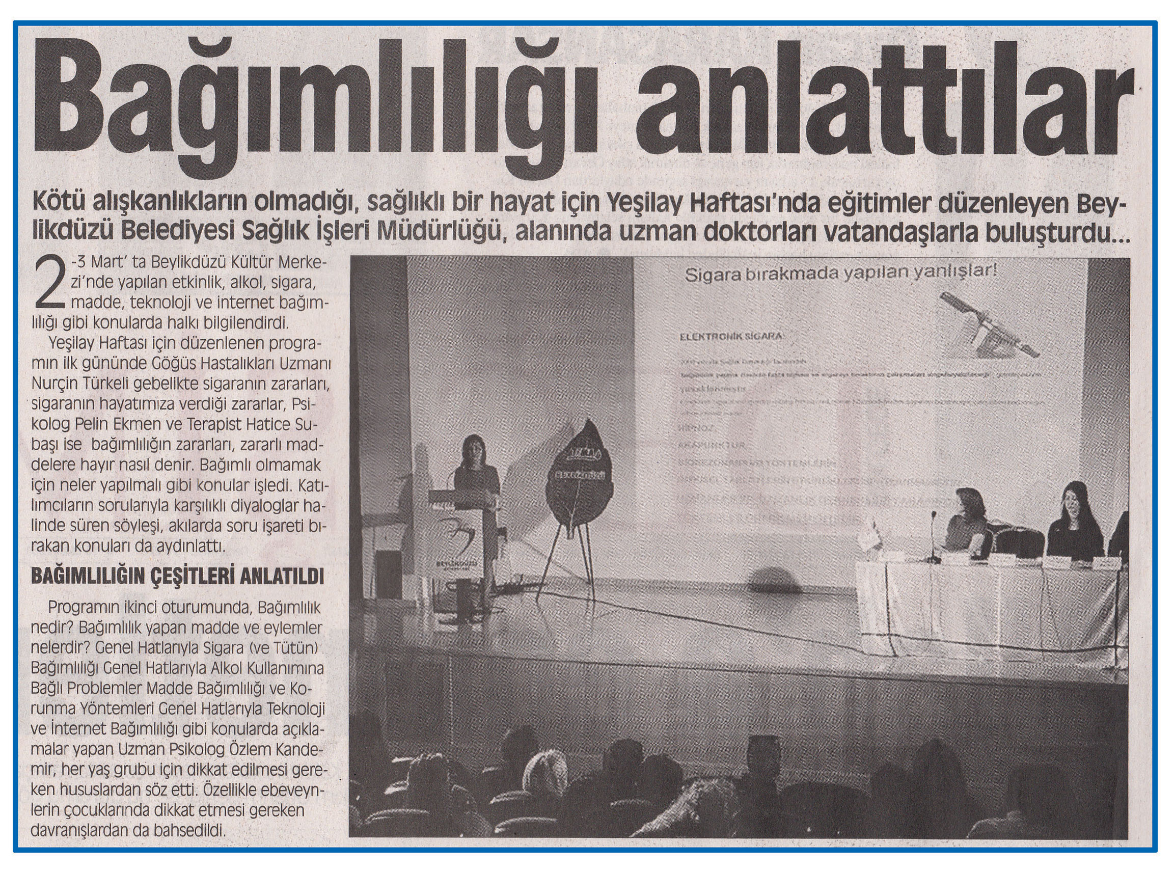 5 Mart 2015 tarihli ''DEĞİŞİM'' gazetesi. Kötü alışkanlıkların olmadığı,sağlıklı bir hayat için Yeşilay Haftası'nda eğitimler düzenleyen Beylikdüzü Belediyesi Sağlık İşleri Müdürlüğü, alanında uzman doktorları vatandaşlarla buluşturdu...