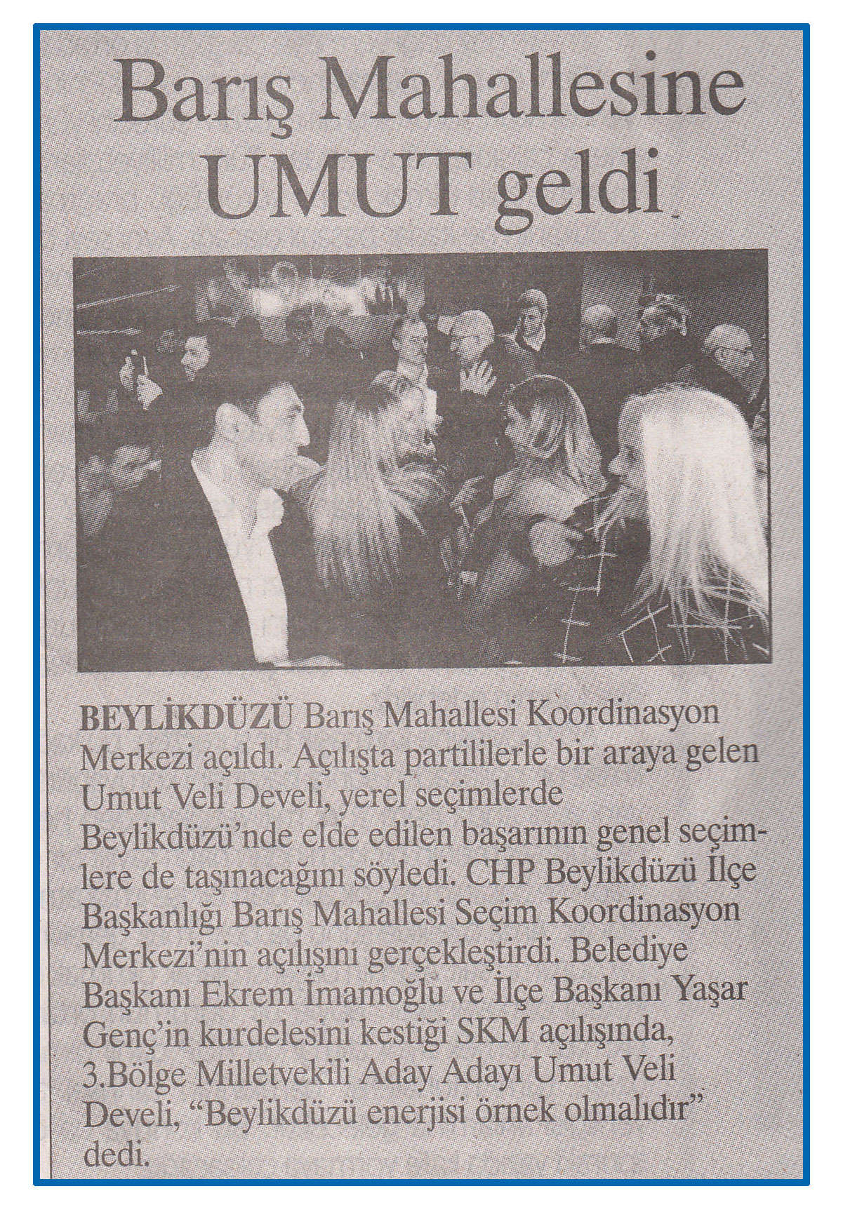 25 Mart 2015 tarihli ''DEĞİŞİM'' gazetesi. Beylikdüzü Barış Mahallesi Koordinasyon Merkezi açıldı.