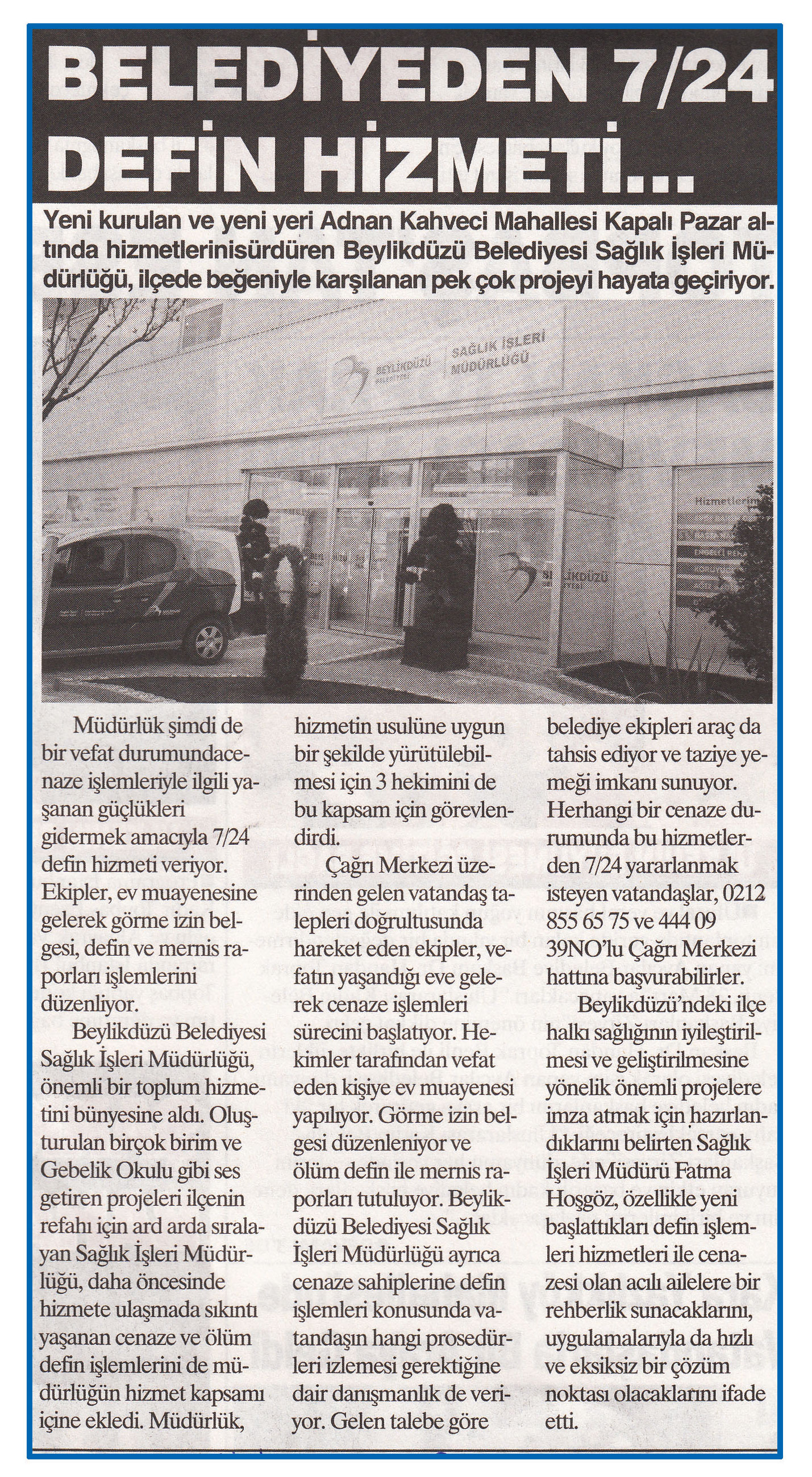 27 Mart 2015 tarihli ''HABER EKSPRESS'' gazetesi. Yeni kurulan ve yeni yeri Adnan Kahveci Mahallesi Kapalı Pazar altında hizmetlerini sürdüren Beylikdüzü Belediyesi Sağlık İşleri Müdürlüğü,ilçede beğeniyle karşılanan pek çok projeyi hayata geçiriyor.