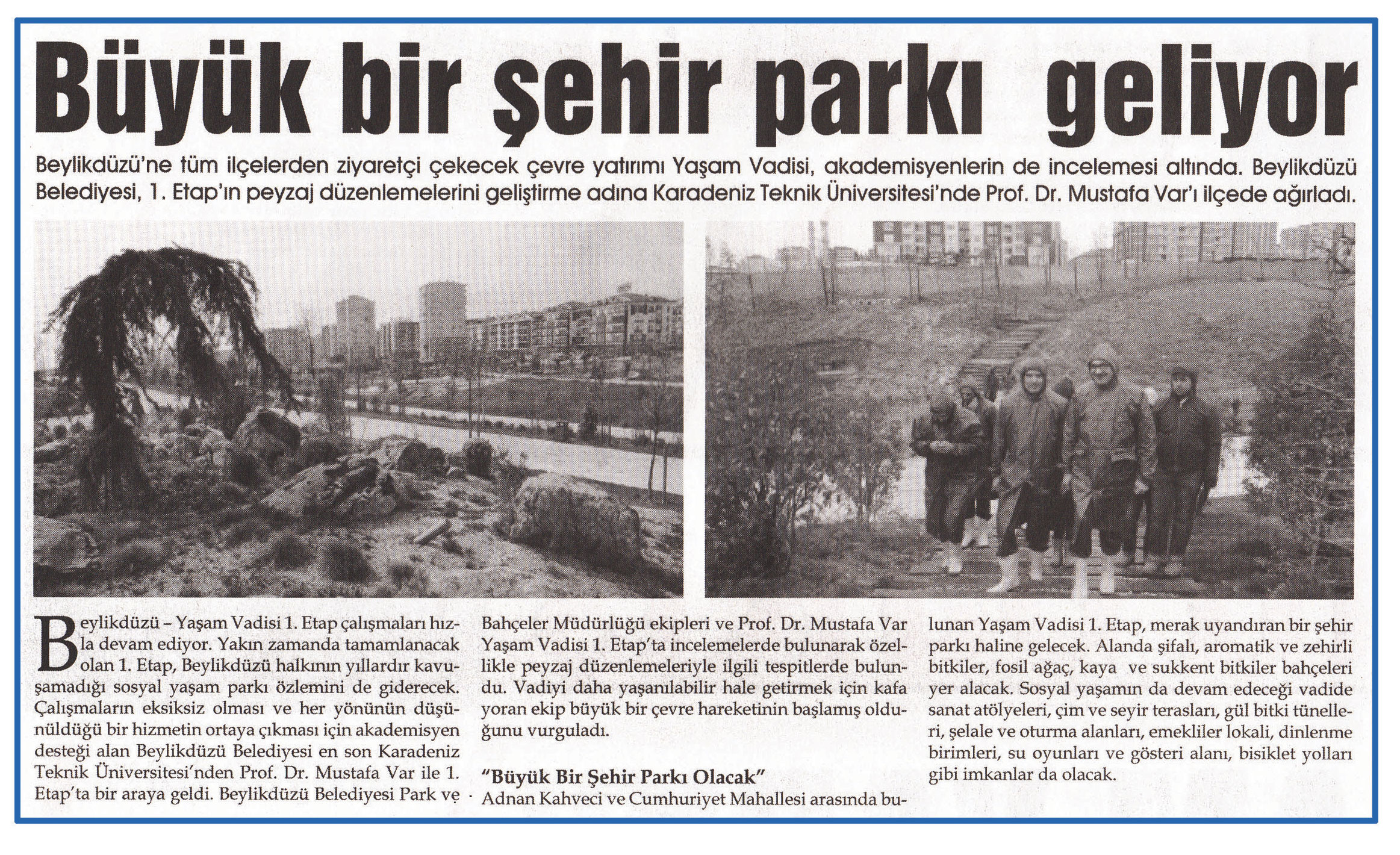 20 Nisan 2015 tarihli ''HÜRBAKIŞ'' gazetesi. Beylikdüzü - Yaşam Vadisi 1. Etap çalışmaları hızla devam ediyor. Yakın zamanda tamamlanacak olan 1. Etap,Beylikdüzü halkının yıllardır kavuşamadığı sosyal yaşam parkı özlemini de giderecek.
