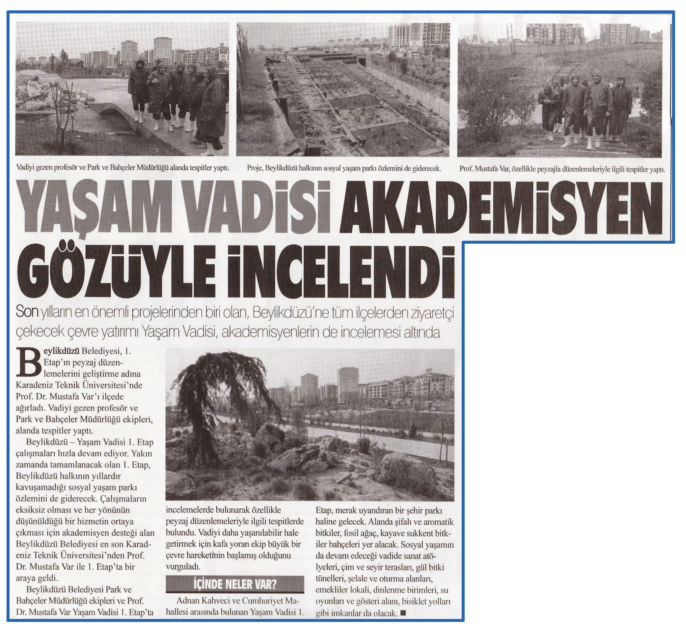 24 Nisan 2015 tarihli ''YENİ SAYFA'' gazetesi. Son yılların en önemli projelerinden biri olan,Beylikdüzü'ne tüm ilçelerden ziyaretçi çekecek çevre yatırımı Yaşam Vadisi,akademisyenlerin de incelemesi altında.