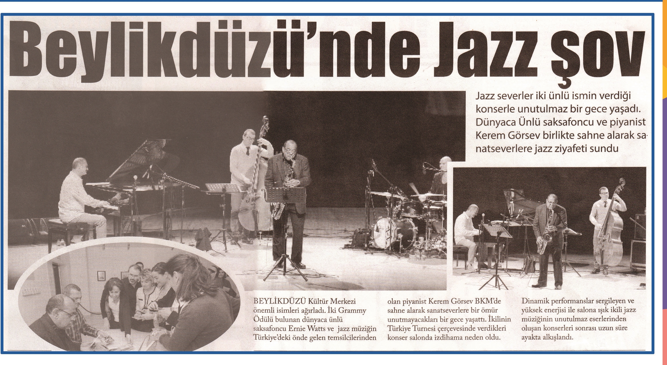 25 Mayıs 2015 tarihli ''BÜYÜK TAKİP'' gazetesi. Jazz severler iki ünlü ismin verdiği konserle unutulmaz bir gece yaşadı. Dünya Ünlü saksafoncu ve piyanist Kerem Görsev birlikte sahne alarak sanatseverlere jazz ziyafeti sundu.