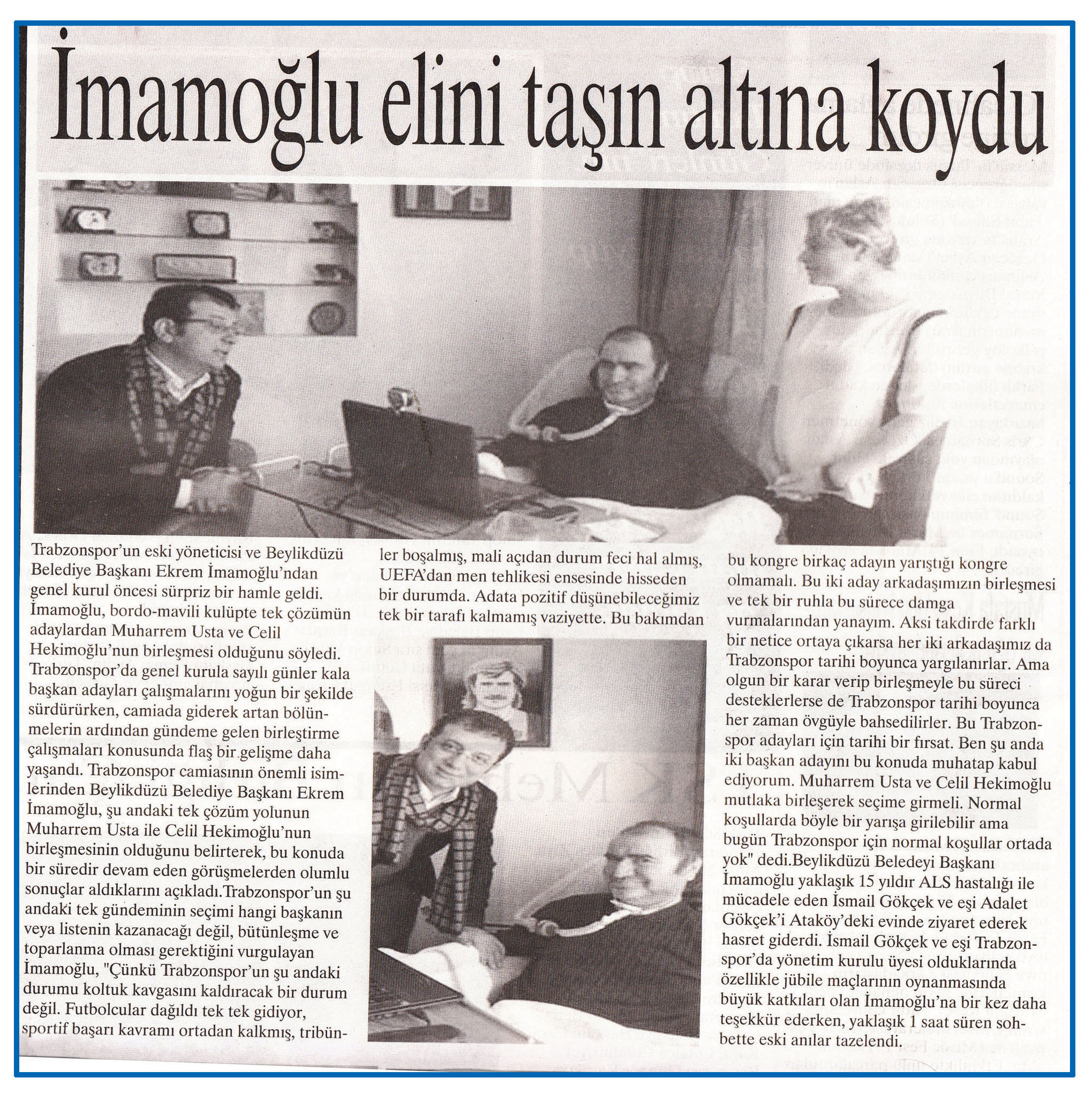 3 Aralık 2015 tarihli "NABIZ" gazetesi. Trabzonspor'un eski yöneticisi ve Beylikdüzü Belediye Başkanı Ekrem İmamoğlu'ndan genel kurul öncesi sürpriz bir hamle geldi.