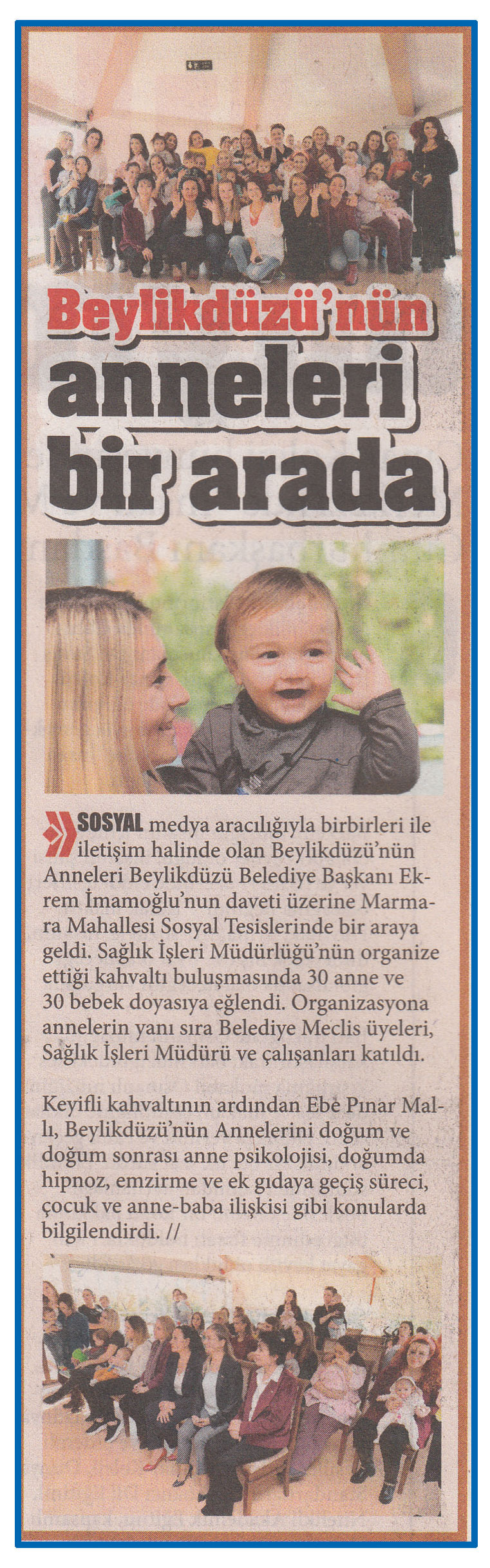 8 Aralık 2015 tarihli "212 HABER" gazetesi. Sosyal medya aracılığıyla birbirleri ile iletişim halinde olan Beylikdüzü'nün Anneleri Beylikdüzü Belediye Başkanı Ekrem İmamoğlu'nun daveti üzerine Marmara Mahallesi Sosyal Tesislerinde bir araya geldi.