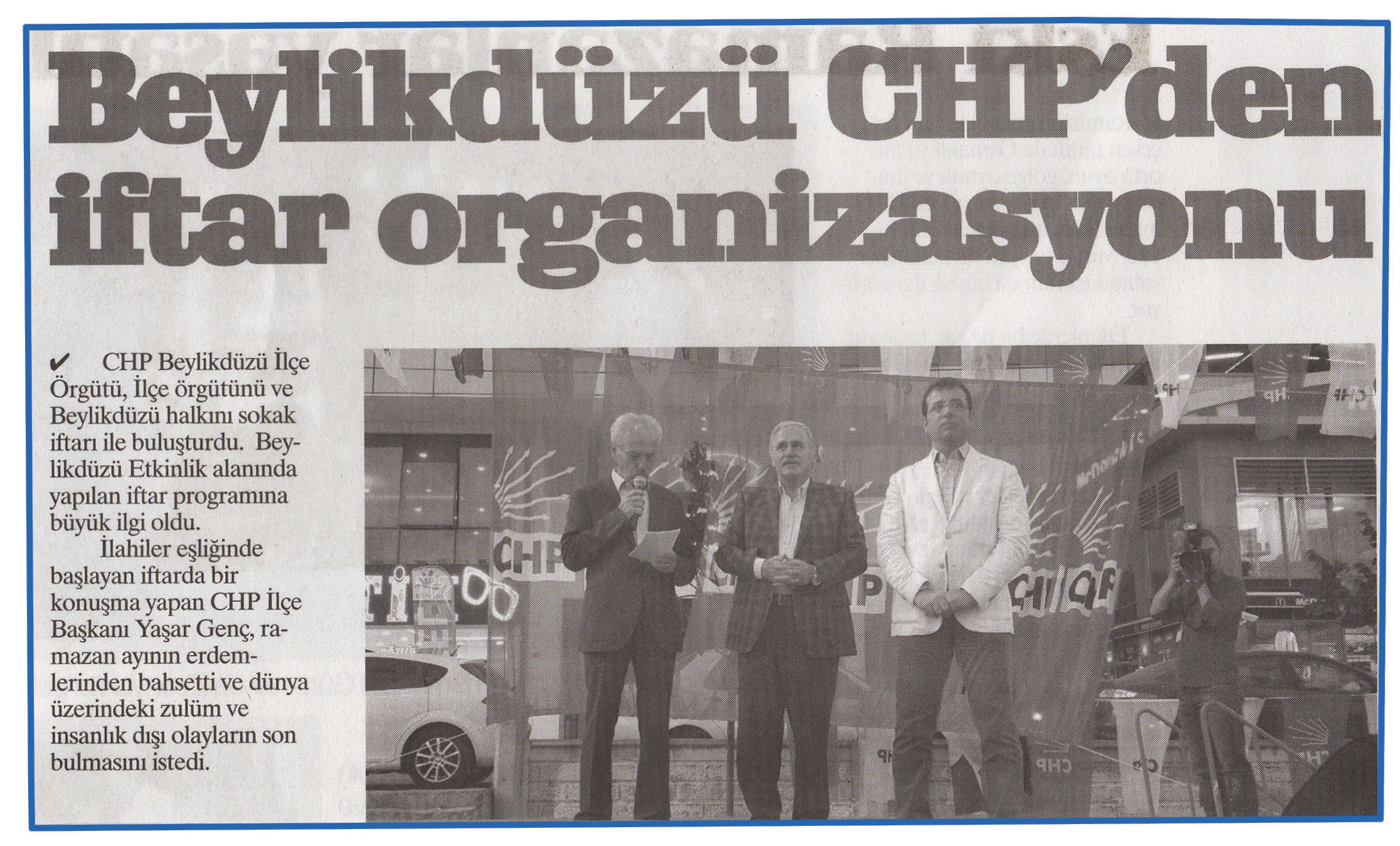 7 Temmuz 2015 tarihli ''ANAHABER'' gazetesi. CHP Beylikdüzü İlçe Örgütünü ve Beylikdüzü halkını sokak iftarı ile buluşturdu.Beylikdüzü Etkinlik alanında yapılan iftar programına büyük ilgi oldu.