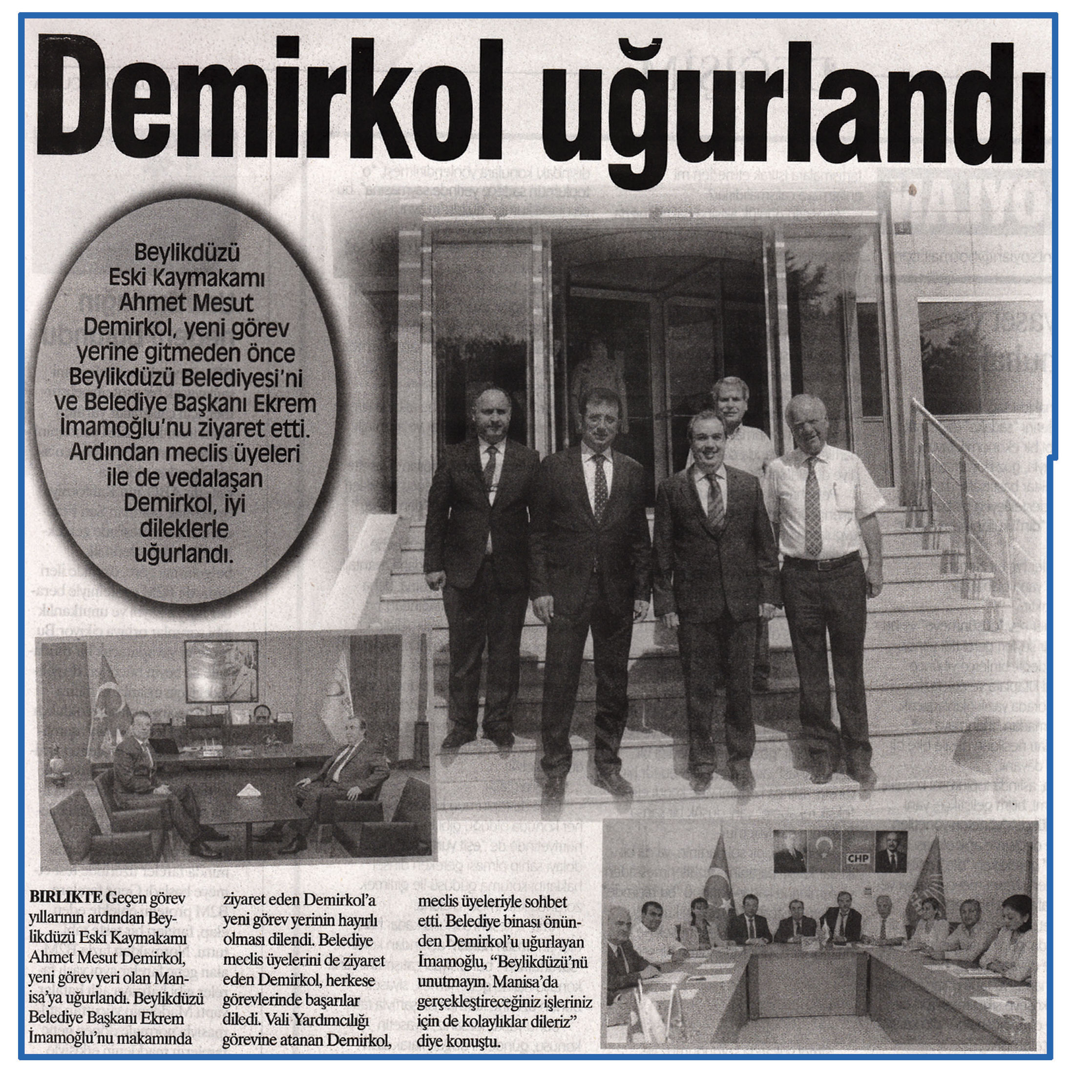 10 Temmuz 2015 tarihli ''DEĞİŞİM'' gazetesi. Beylikdüzü Eski Kaymakamı Ahmet Mesut Demirkol, yeni görev yerine gitmeden önce Beylikdüzü Belediyesi'ni ve Belediye Başkanı Ekrem İmamoğlu'nu ziyaret etti.