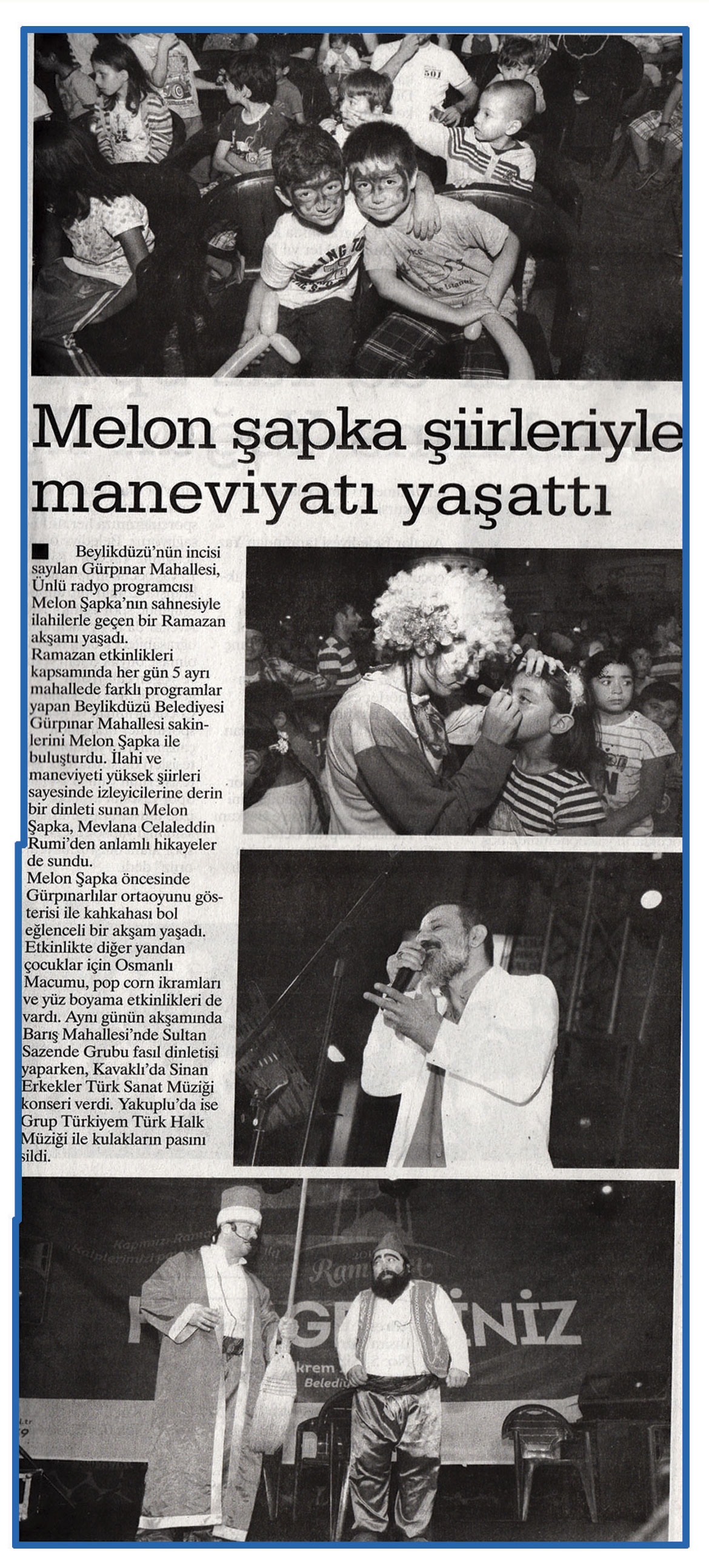 10 Temmuz 2015 tarihli ''FARK'' gazetesi. Beylikdüzü'nün incisi sayılan Gürpınar Mahallesi,Ünlü radyo programcısı Melon Şapka'nın sahnesiyle ilahilerle geçen bir Ramazan akşamı yaşadı.