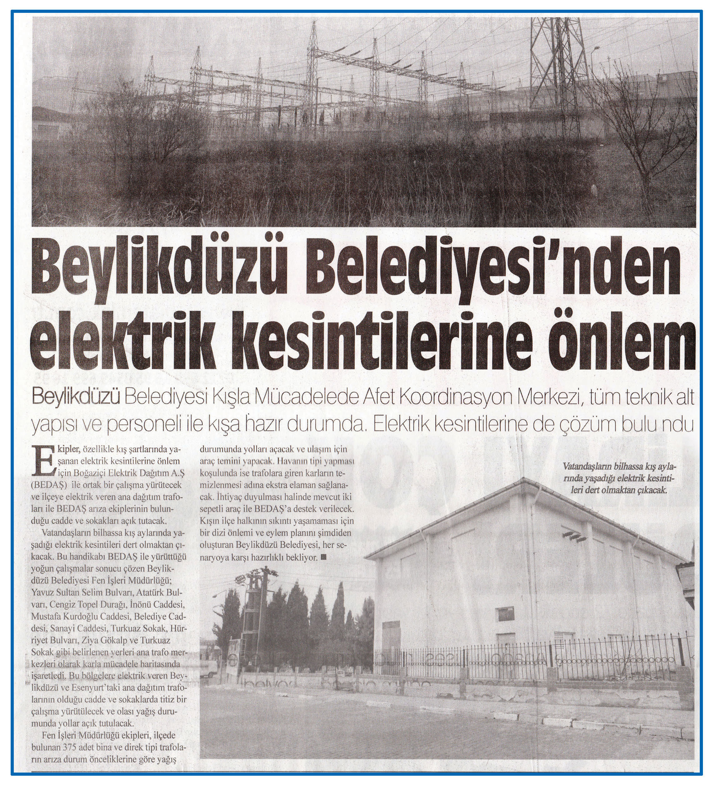24 Aralık 2015 tarihli "YANKI" gazetesi. Beylikdüzü Belediyesi Kışla Mücadelede Afet Koordinasyon Merkezi, tüm teknik alt yapısı ve personeli ile kışa hazır durumda. Elektrik kesintilerine de çözüm bulundu.