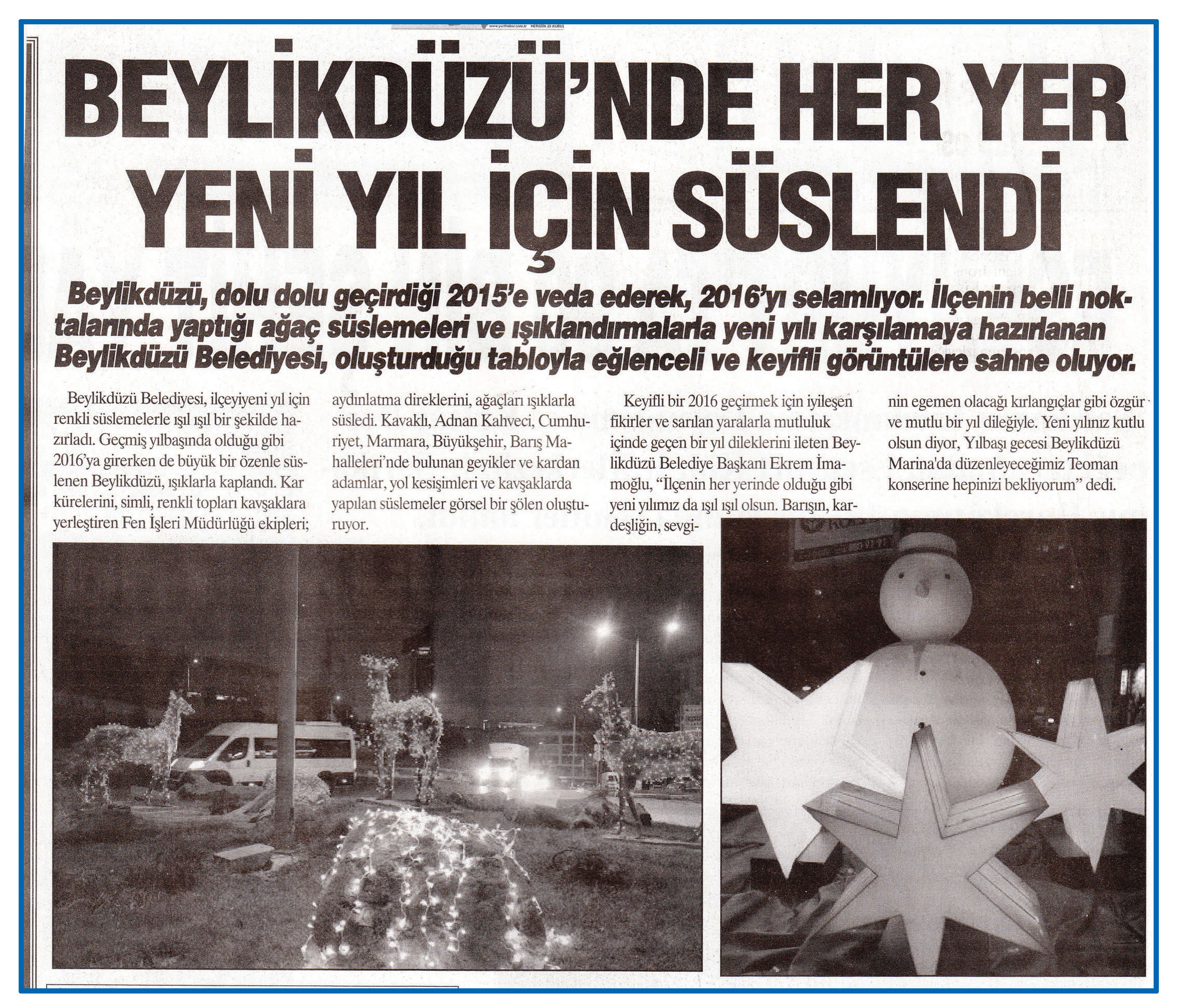 29 Aralık 2015 tarihli "YURT HABER" gazetesi. Beylikdüzü, dolu dolu geçirdiği 2015'e veda ederek, 2016'yı selamlıyor.
