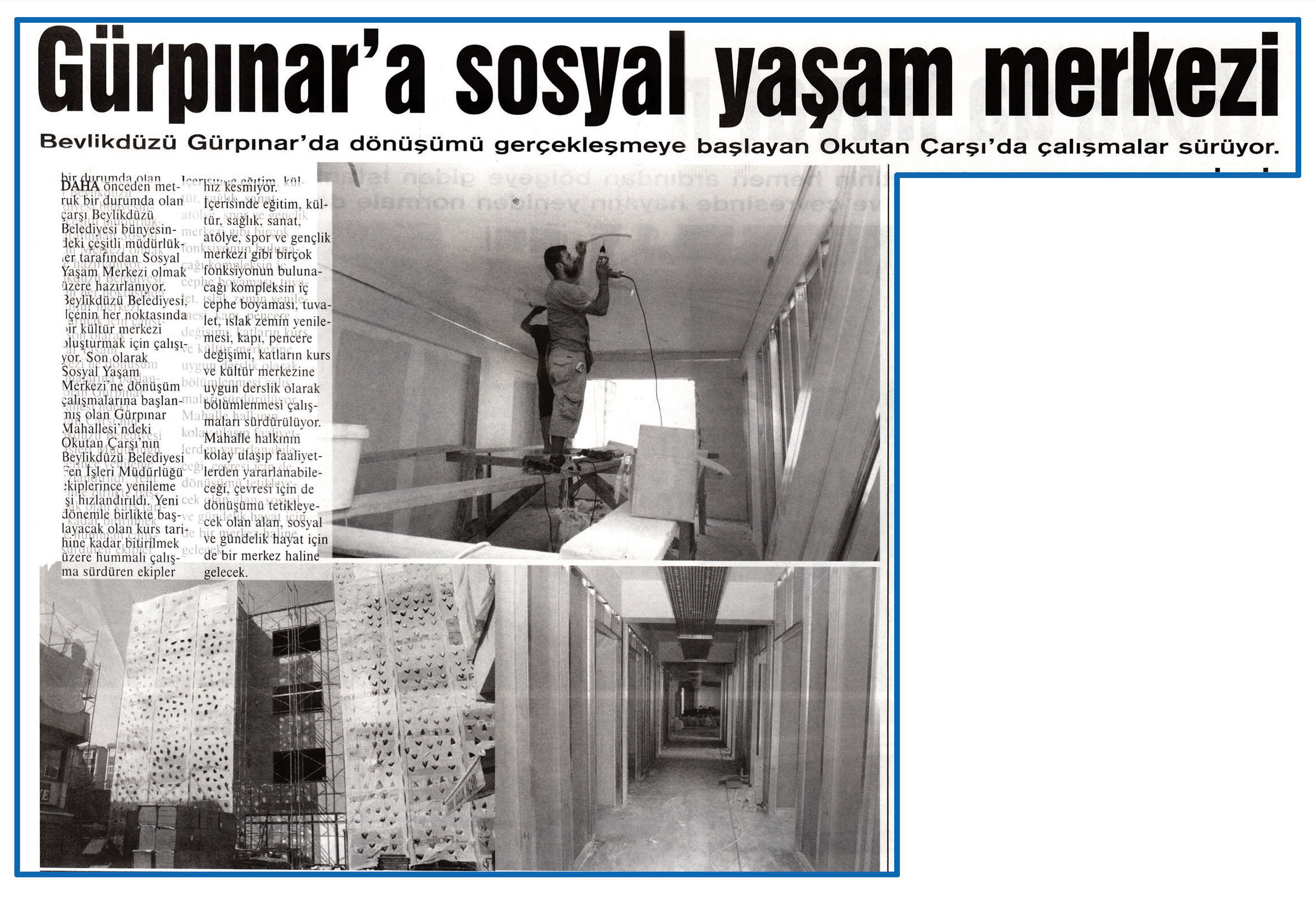4 eylül 2015 tarihli ''MARMARA'' gazetesi. Beylikdüzü Gürpınar'da dönüşümü gerçekleşmeye başlayan Okutan Çarşı'da çalışmalar sürüyor.