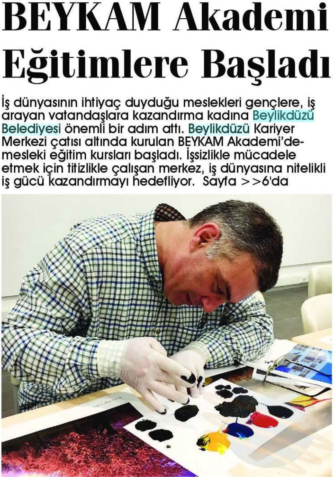 9 Mayıs 2017 tarihli "HÜRBAKIŞ" gazetesi. İş dünyasının ihtiyaç duyduğu meslekleri gençlere, iş arayan vatandaşlara kazandırma adına Beylikdüzü Belediyesi önemli bir adım attı. Beylikdüzü Kariyer Merkezi çatısı altında kurulan BEYKAM Akademi'de meslek eğitim kursları başladı.