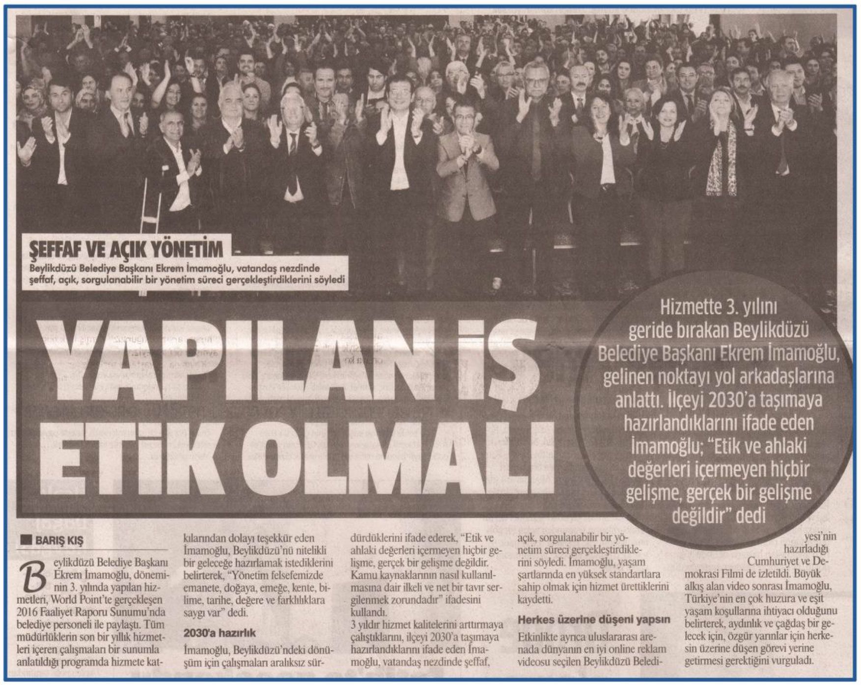 13 Nisan 2017 tarihli "GAZETEM İSTANBUL" gazetesi. Hizmette 3. yılını geride bırakan Beylikdüzü Belediye Başkanı Ekrem İmamoğlu, gelinen noktayı yol arkadaşlarına anlattı.