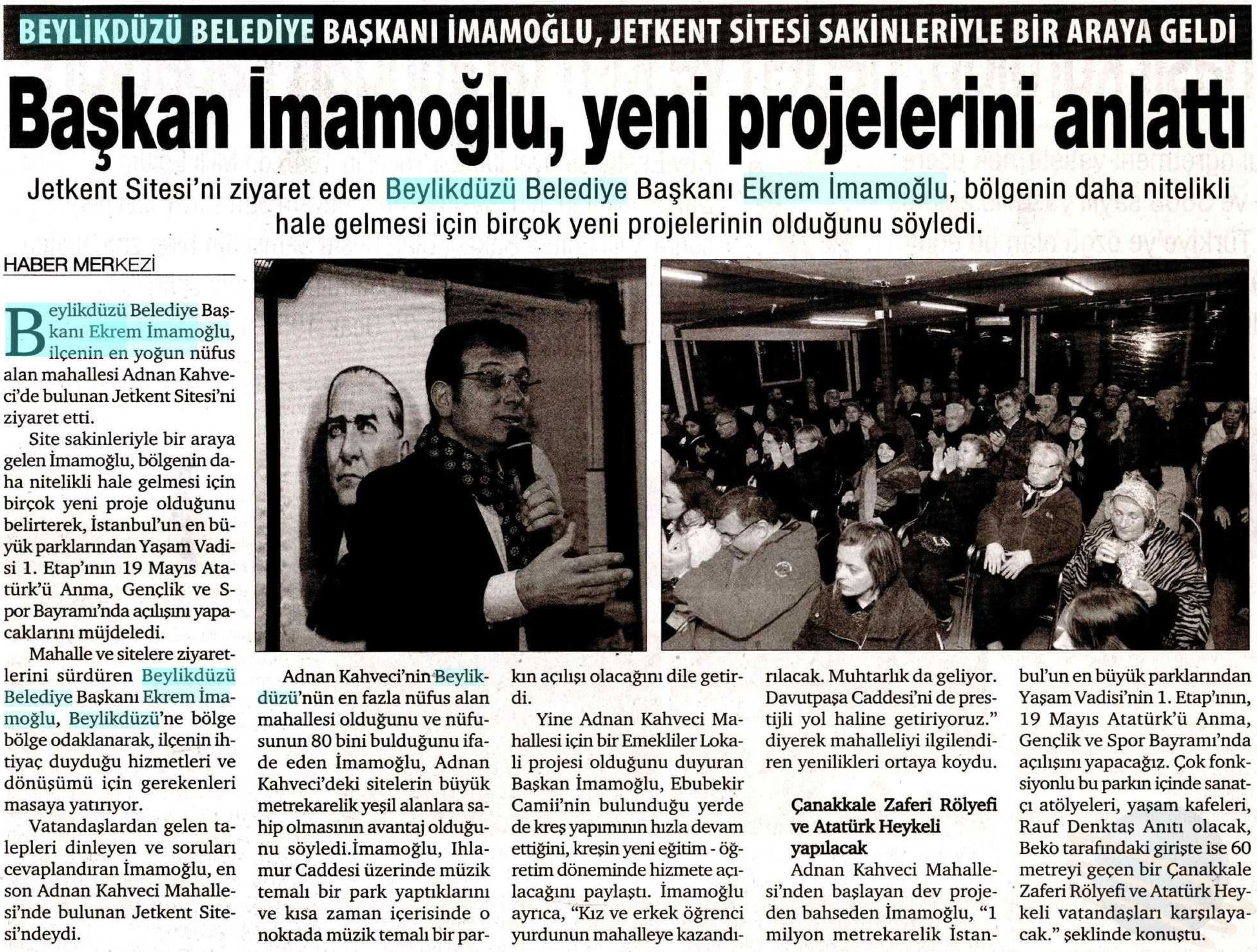 17 Nisan 2017 tarihli "HÜRSES" gazetesi. Beylikdüzü Belediye Başkanı Ekrem İmamoğlu, bölgenin daha nitelikli hale gelmesi için bir çok yeni projelerinin olduğunu söyledi.