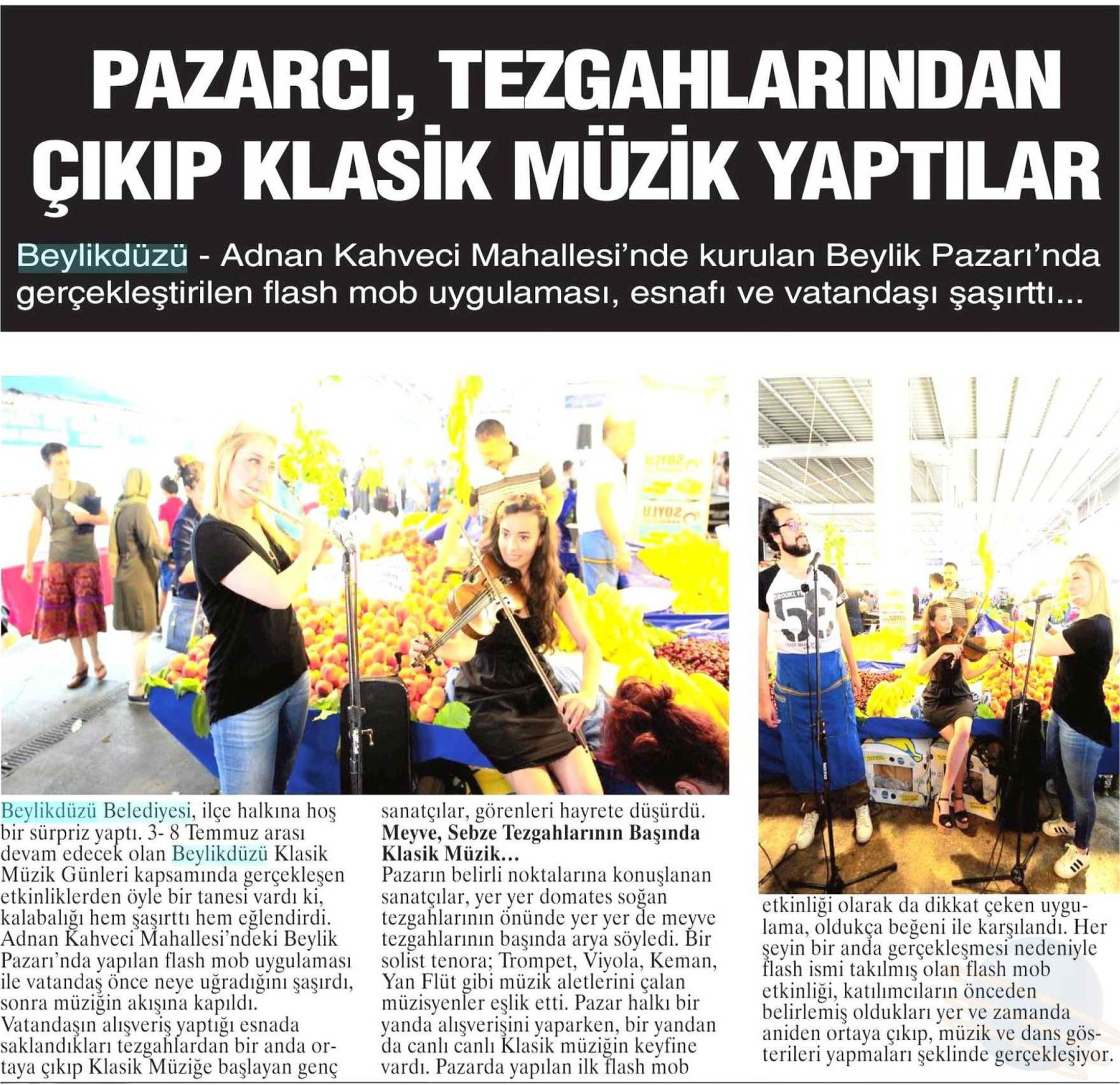 8 Temmuz 2017 tarihli "NABIZ" gazetesi. Beylikdüzü- Adnan Kahveci Mahallesi'nde kurulan Beylik Pazarı'nda gerçekleştirilen flash mob uygulaması, esnafı ve vatandaşı şaşırttı.