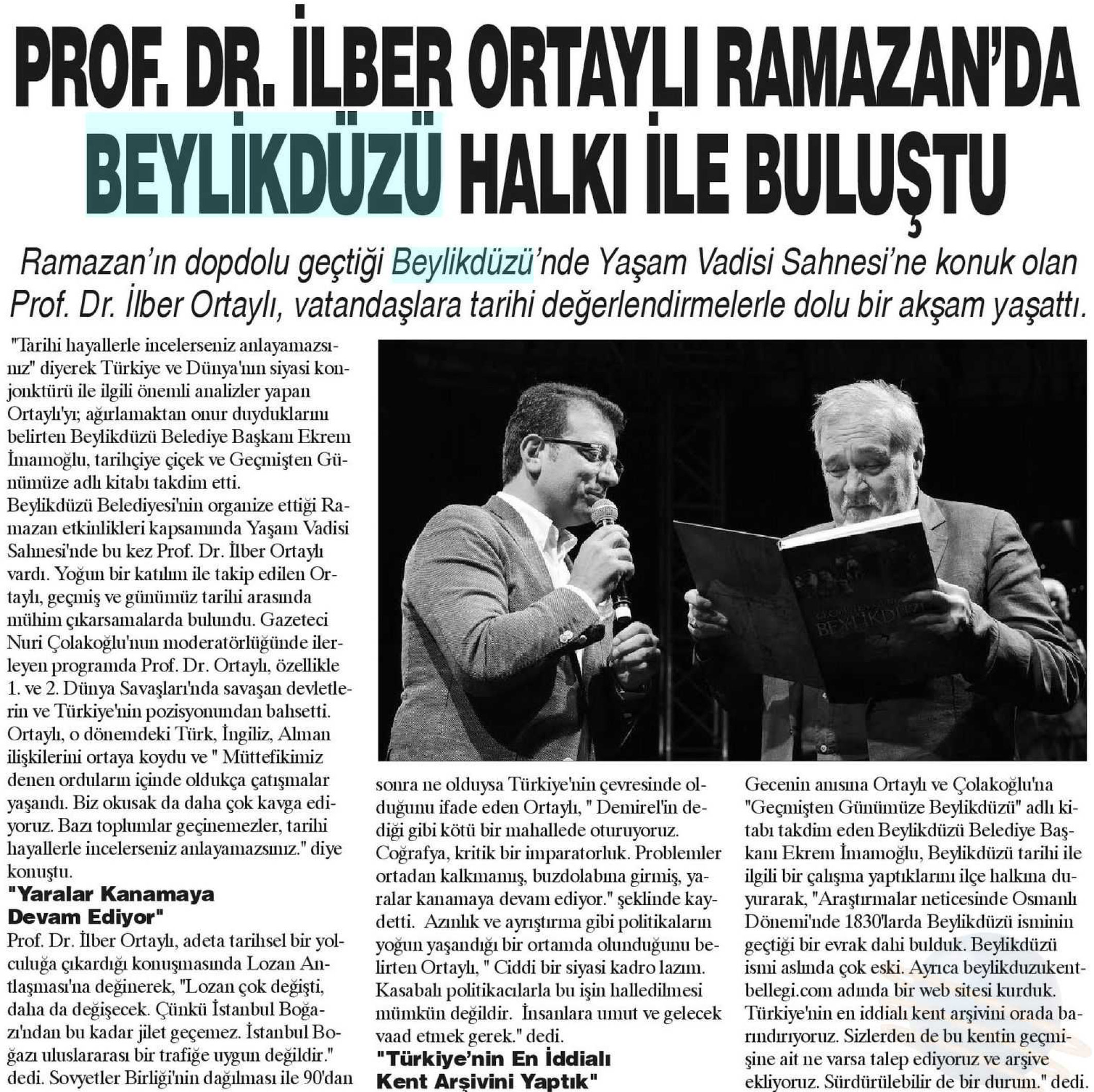 12 Haziran 2017 tarihli "BÜYÜKÇEKMECE" gazetesi. Ramazan'ın dopdolu geçtiği Beylikdüzü'nde Yaşam Vadisi Sahnesi'ne konuk olan Prof. Dr. İlber Ortaylı, vatandaşlara tarihi değerlendirmelerle dolu bir akşam yaşattı.