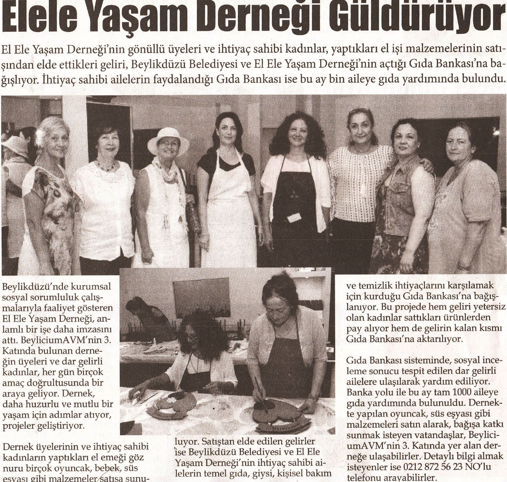 28 Temmuz 2017 tarihli "HÜR BAKIŞ" gazetesi. El Ele Yaşam Derneği'nin gönüllü üyeleri ve ihtiyaç sahibi kadınlar, yaptıkları el işi malzemelerinin satışından elde ettikleri geliri, Beylikdüzü Belediyesi ve El Ele Yaşam Derneği'nin açtığı Gıda Bankası'na bağışlıyor.