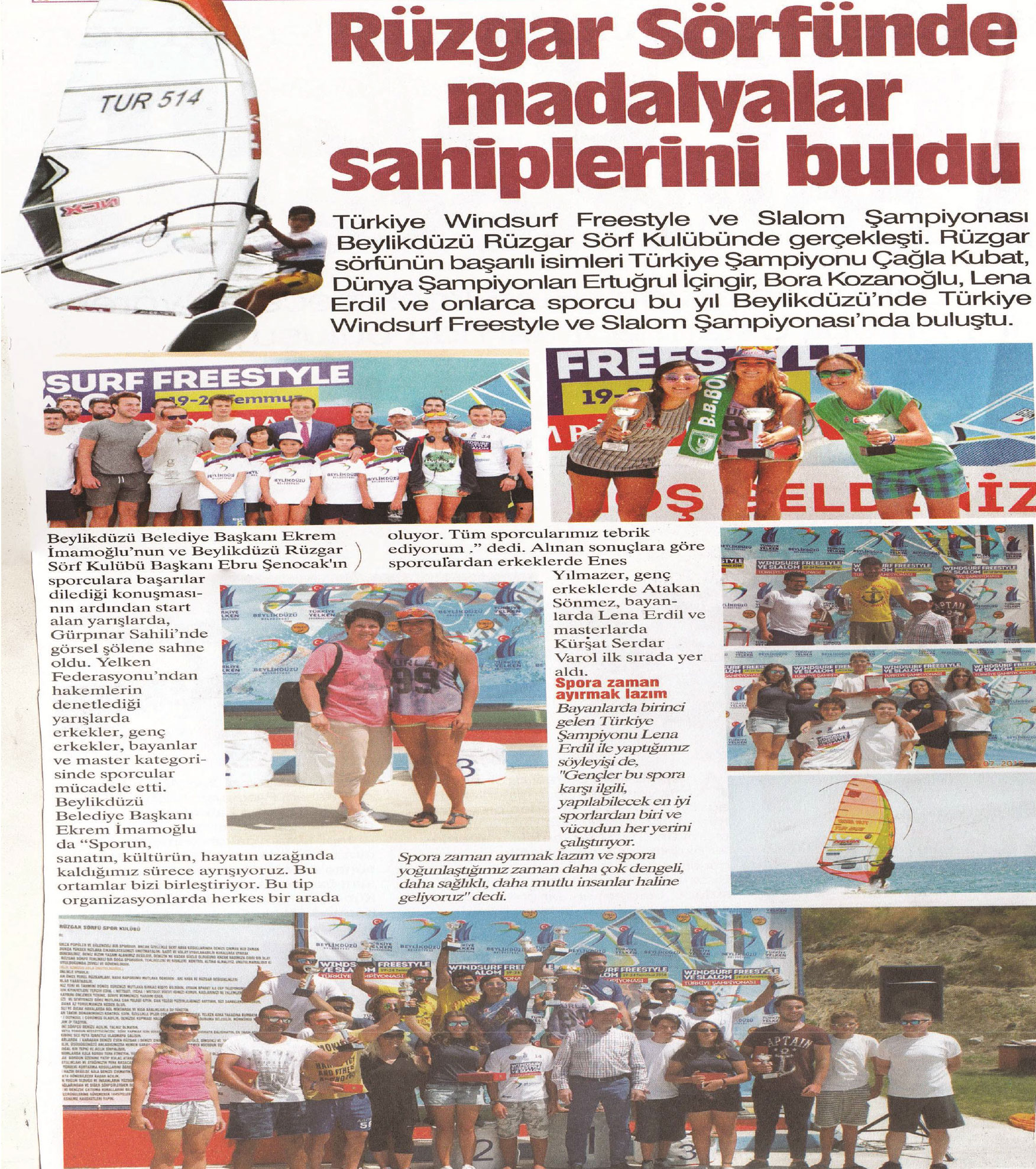 28 Temmuz 2017 tarihli "ZEYNA" gazetesi. Türkiye Windsurf Freestyl ve Slalom Şampiyonası Beylikdüzü Rüzgar Sörf Kulübünde gerçekleşti. Çağla Kubat, Dünya Şampiyonları Ertuğrul İçingir, Bora Kozanoğlu, Lena Erdil ve onlarca sporcu bu yıl Beylikdüzü'nde Türkiye Windsurf Freestyl ve Slalom Şampiyonası'nda buluştu.