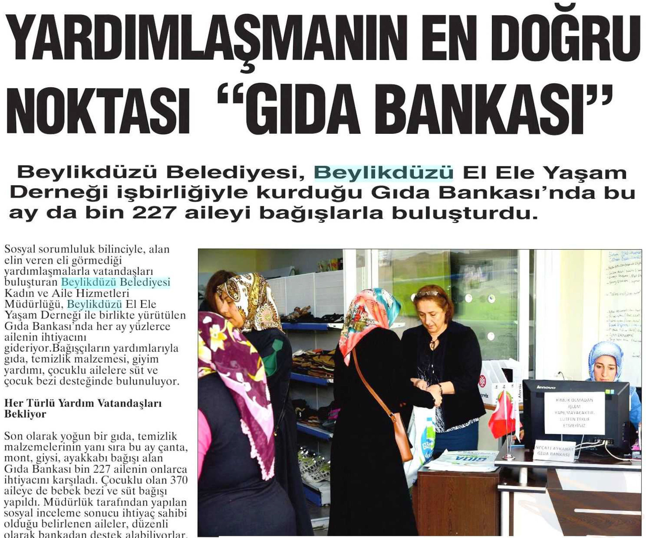 26 Nisan 2017 tarihli "NABIZ" gazetesi. Beylikdüzü Belediyesi, Beylikdüzü El Ele Yaşam Derneği iş birliğiyle kurduğu Gıda Bankası'nda bu ay da bin 227 aileyi bağışlarla buluşturdu.