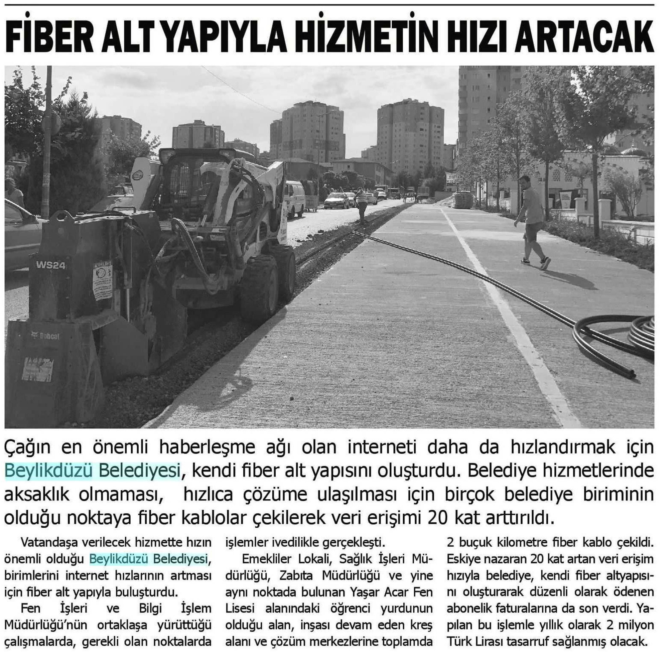 17 Ağustos 2017 tarihli "İÇ SES" gazetesi. Çağın haberleşme ağı olan interneti daha da hızlandırmak için Beylikdüzü Belediyesi, kendi fiber alt yapısını oluşturdu. Belediye hizmetlerinde aksaklık olmaması, hızlıca çözüme ulaşılması için birçok belediye biriminin olduğu noktaya fiber kablolar çekilerek ver erişimi 20 kat arttırıldı.