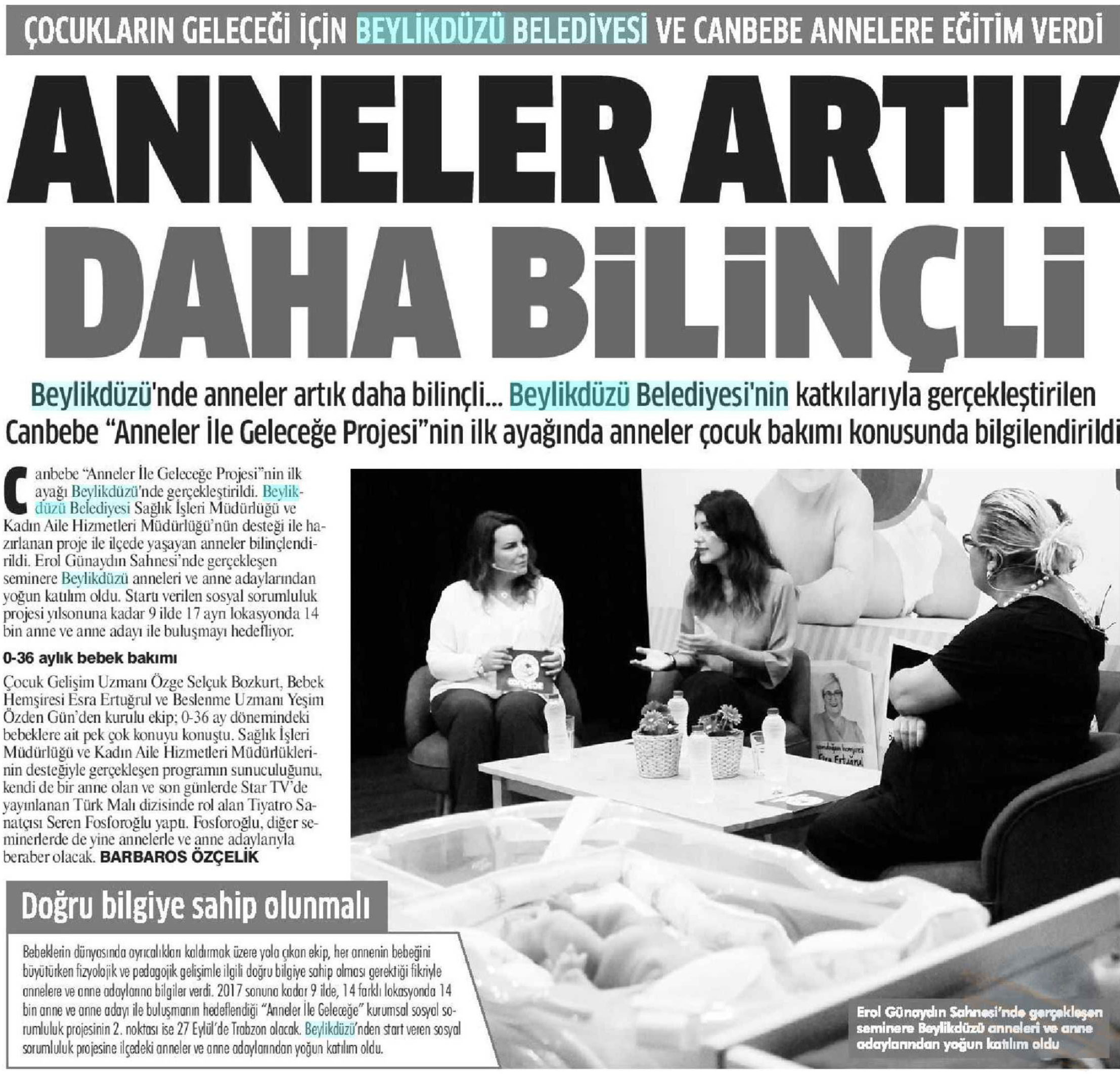 21 Eylül 2017 tarihli "GAZETEM İSTANBUL" gazetesi. Beylikdüzü Belediyesi'nin katkılarıyla gerçekleştirilen Canbebe "Anneler İle Geleceğe Projesi'nin" ilk ayağında anneler çocuk bakımı konusunda bilgilendirildi.