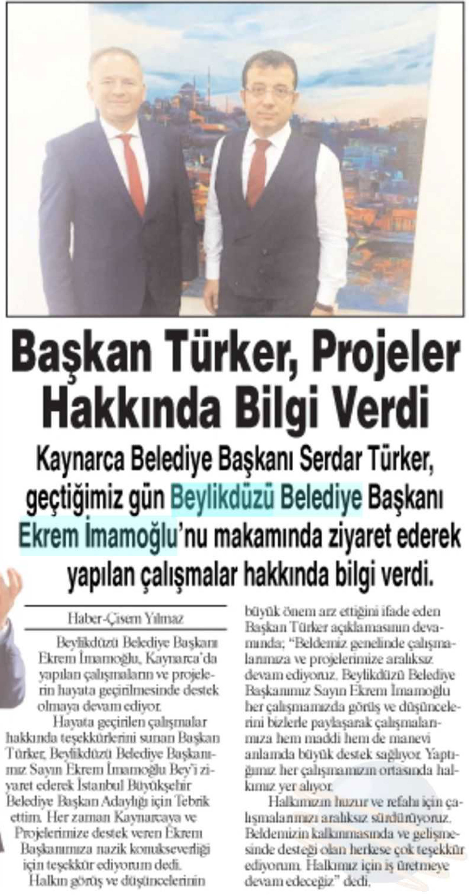 4 Ekim 2017 tarihli "SINIR KENT" gazetesi. Kaynarca Belediye Baskanı Serdar Türker, geçtiğimiz gün Beylikdüzü Belediye Başkanı Ekrem İmamoğlu'nu makamında ziyaret ederek yapılan çalışmalar hakkında bilgi verdi.