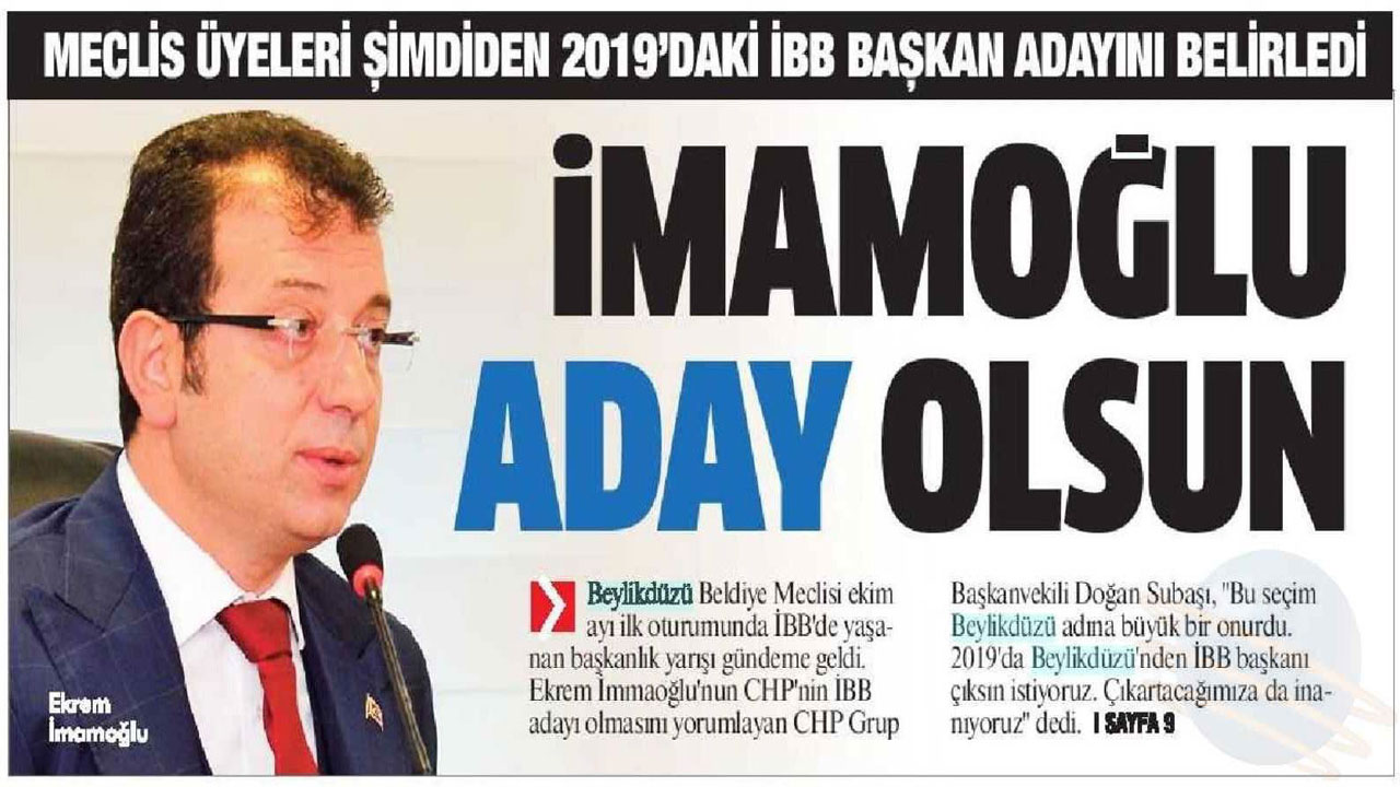 3 Ekim 2017 tarihli "GAZETEM İSTANBUL" gazetesi. Beylikdüzü Belediye Meclisi ekim ayı ilk oturumunda , İBB'de yaşanan başkanlık yarışı gündeme geldi.