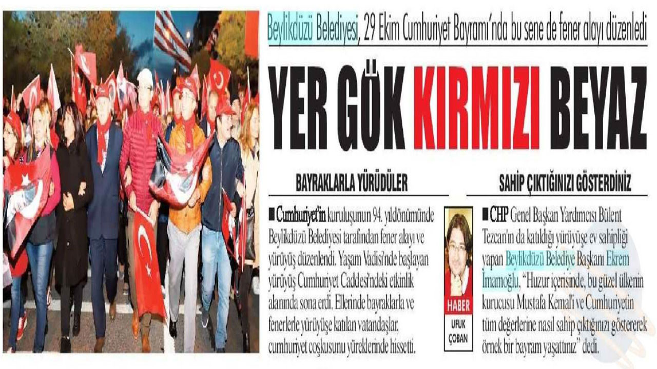 30 Ekim 2017 tarihli "GAZETEM İSTANBUL" gazetesi. Beylikdüzü Belediyesi, 29 Ekim Cumhuriyet Bayramı'nda bu sene de fener alayı düzenledi.