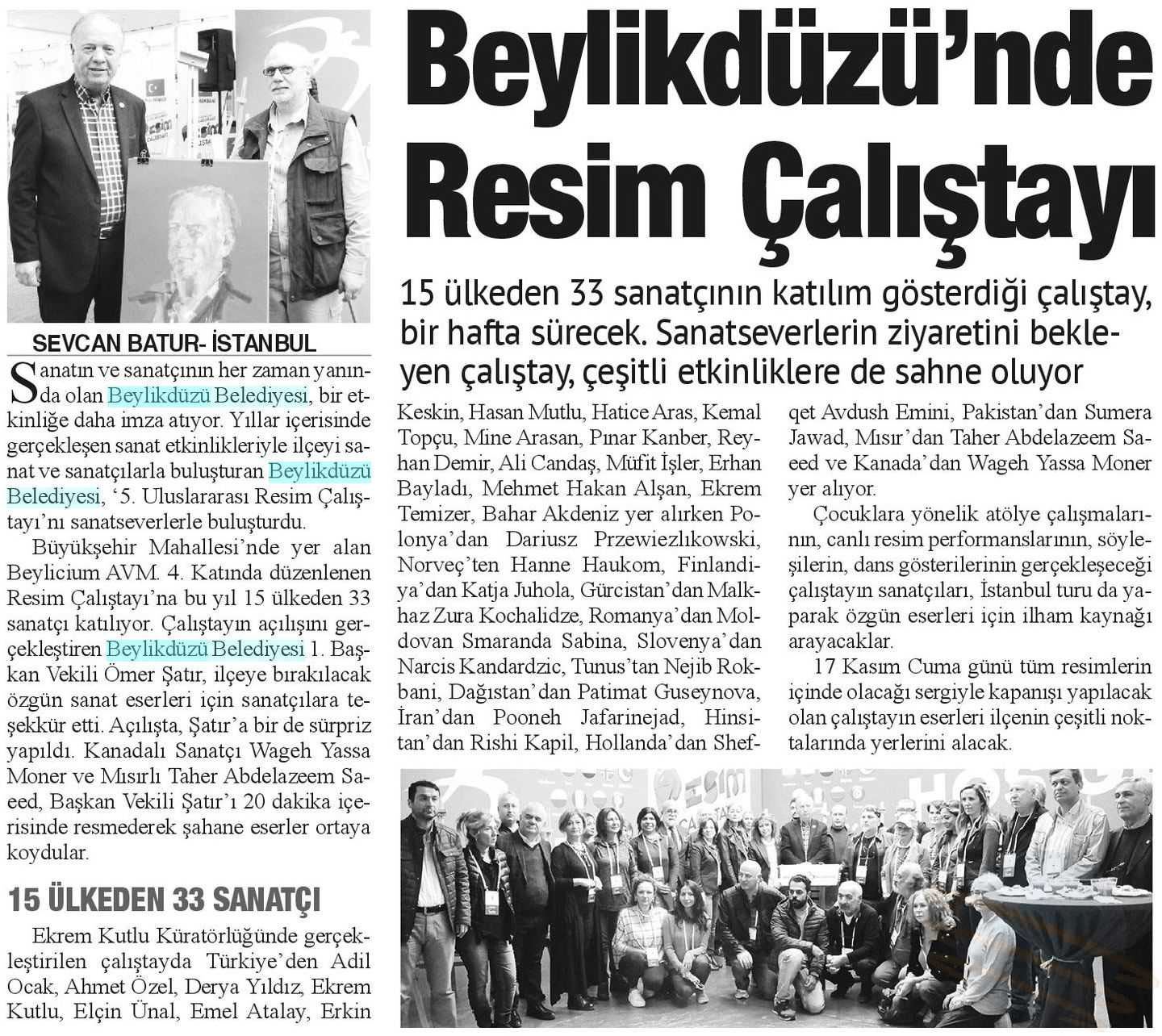 15 Kasım 2017 tarihli "BİZİM ANADOLU" gazetesi. 15 ülkeden 33 sanatçının katılım gösterdiği çalıştay, bir hafta sürecek. Sanatseverlerin ziyaretini bekleyen çalıştay, çeşitli etkinliklere de sahne oluyor.